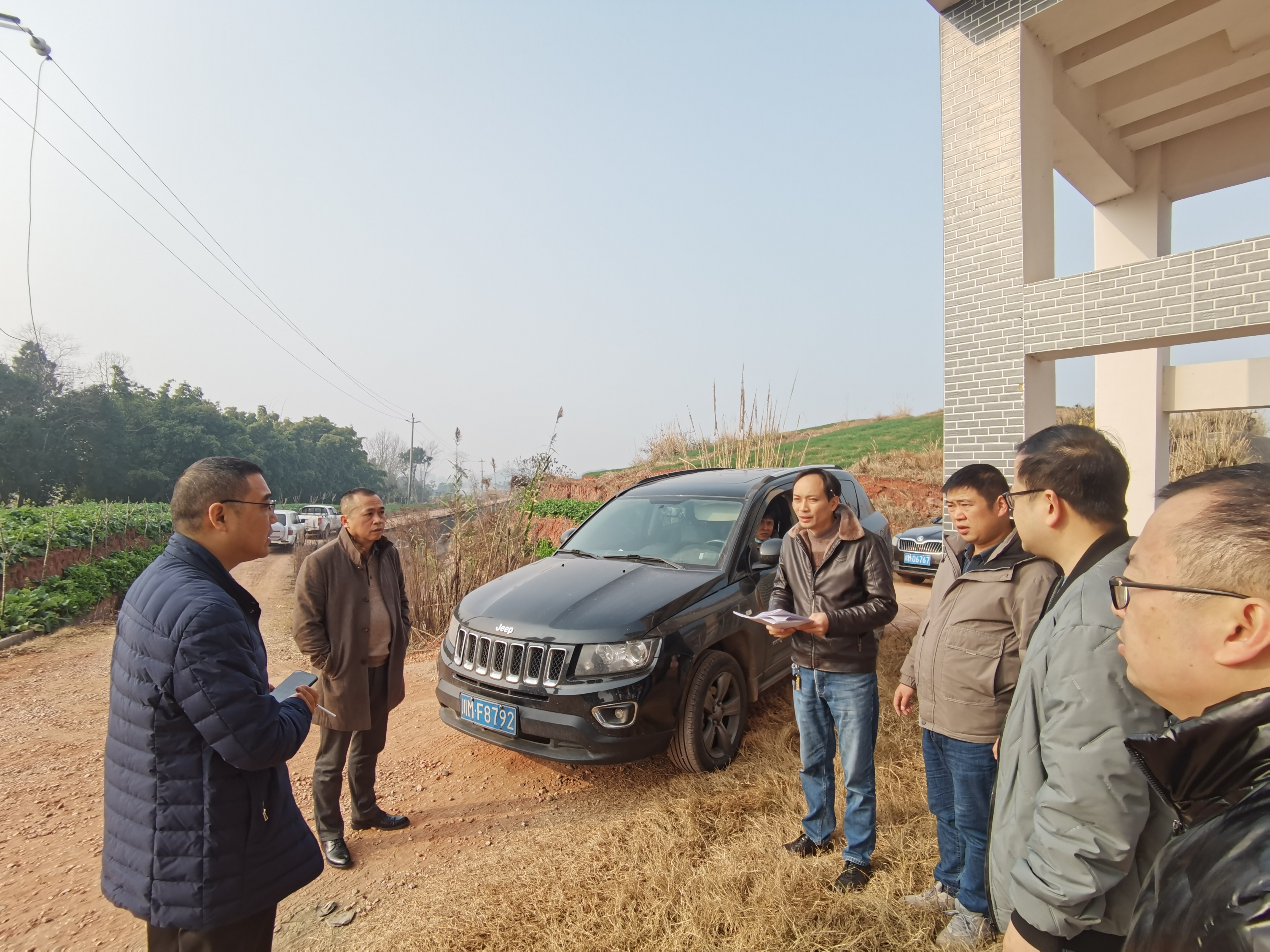 1月12日,资阳站同施工方查看古加湾斗渠、清风闸、矮山坝施工点位情况。