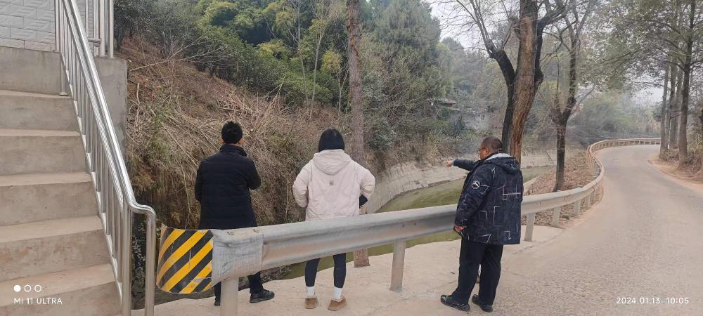 1月13日,东部新区水利管理站现场查看充水南干渠骑龙坳节制闸水标尺安装。