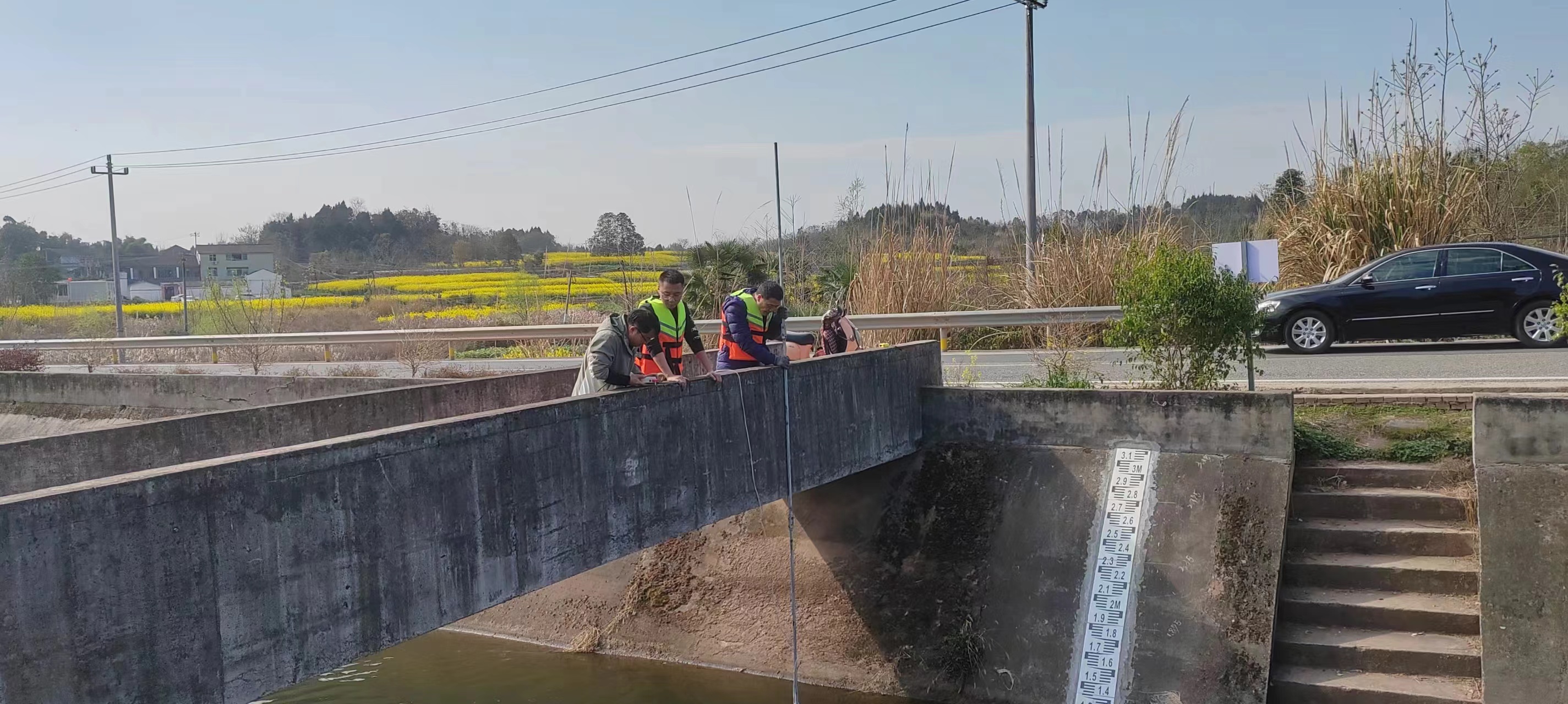 3月14日,资阳水利管理站在低南干渠低水位测流。