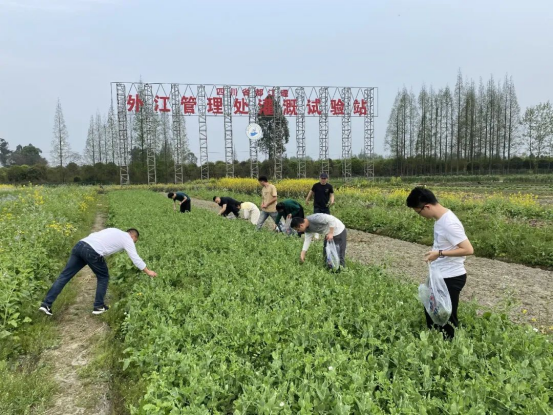 3月16日,外江管理处第一团支部到外江灌溉试验站,齐下农田,采摘蔬菜。