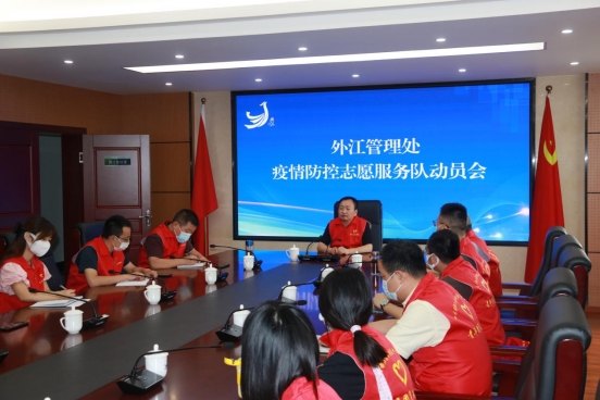 9月1日,面对此次来势汹汹的疫情,我处闻讯而动,积极组织动员,70名青年干部职工踊跃报名,成立了以党委书记、处长肖伟胜为队长,其他处领导为副队长的外江管理处疫情防控志愿者服务队,在处机关四楼会议室召开了动员会。