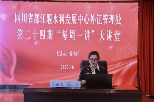 10月28日,外江管理处开展了第二十四期“每周一讲”大讲堂活动,由崇庆水利管理站负责人傅小红为大家带来——《西河防汛管理浅析》。
