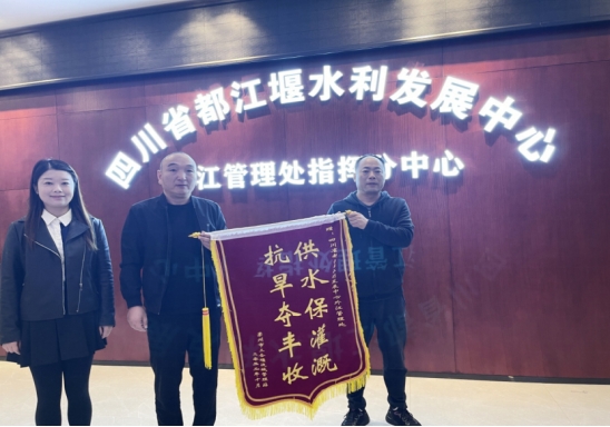 11月10日,三合堰流域管理站胡伟给外江管理处送来了一面锦旗——“供水保灌溉,抗旱夺丰收”,以表达对外江管理处解决了隆兴、道明等片区11万亩农田灌溉难题的感激之情,也对外江管理处在抗旱保灌中的倾心服务和大力支持表示真诚地感谢。