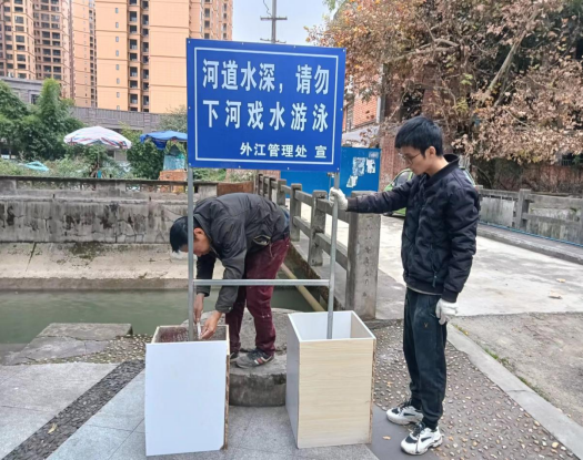 11月18日,三合堰干渠大邑城区安装安全隐患警示牌。
