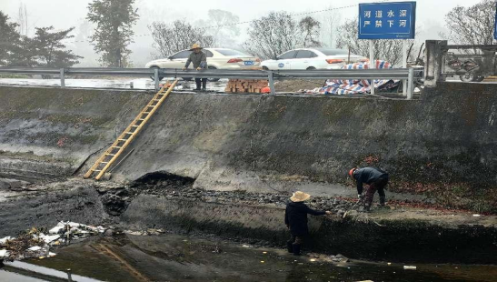 2月8日,大邑水利管理站工程技术人员,到二道闸集水沟工程查勘,干溪河渡槽前跌水、干溪河点房前维修补烂问题现场查勘。