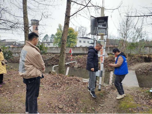 2月9日,玉堂水利管理站相关工作人员与运维公司技术员对各支渠量测水及视频监控进行维护检查。