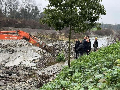 2月7日,玉堂水利管理站站长郑祥带领相关工作人员到石羊镇皂角社区沙沟河段,会同当地政府、社区,以及施工单位工作人员协调维修养护工程周边。