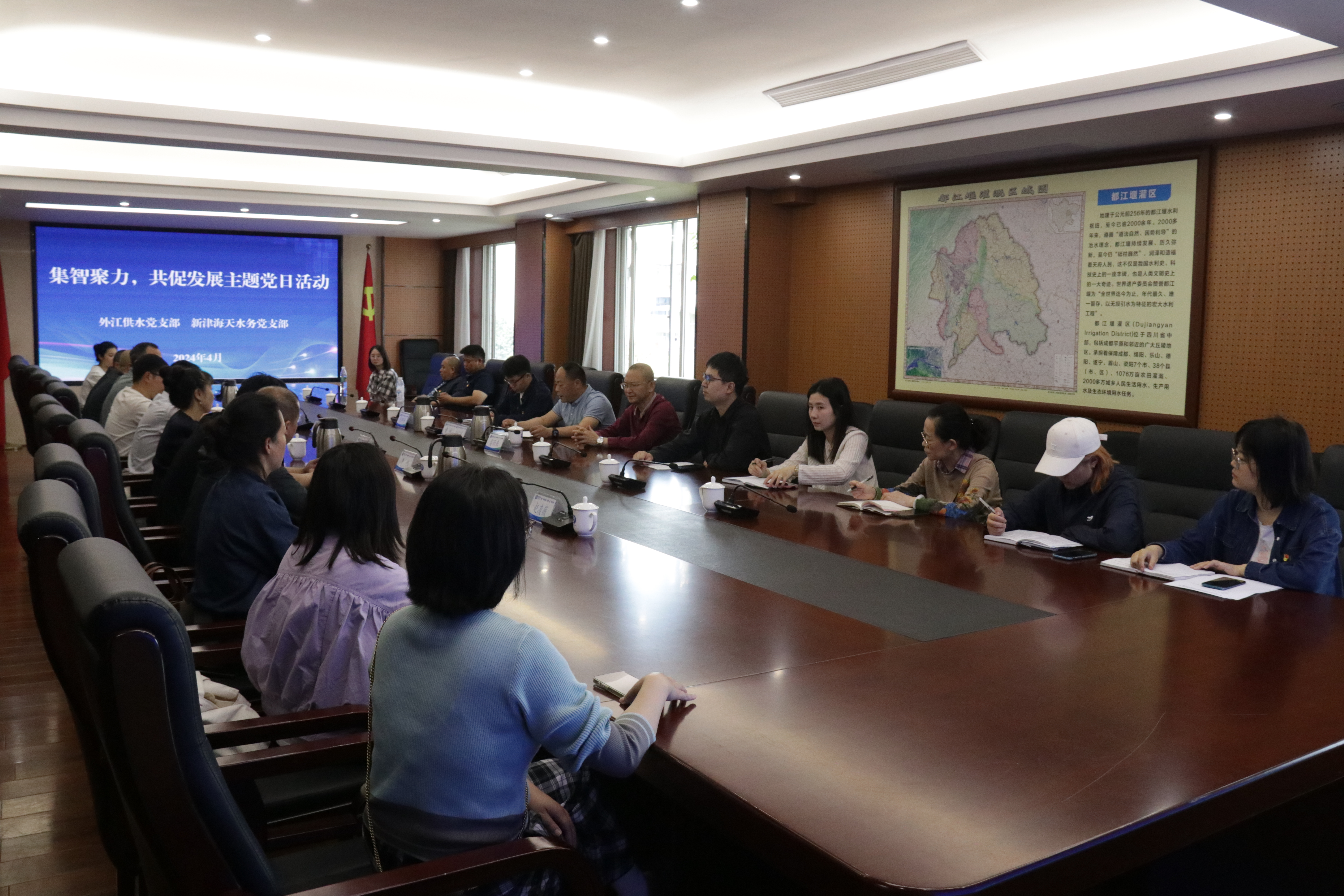 4月24日,为在重赋能、强党建、保供水日常工作中进一步增强与服务企业沟通交流,加强用水单位与用水户的交流与学习,都发中心外江管理处供水党支部与新津海天水务有限公司党支部开展了“集智聚力,共谋发展”主题党日活动。
