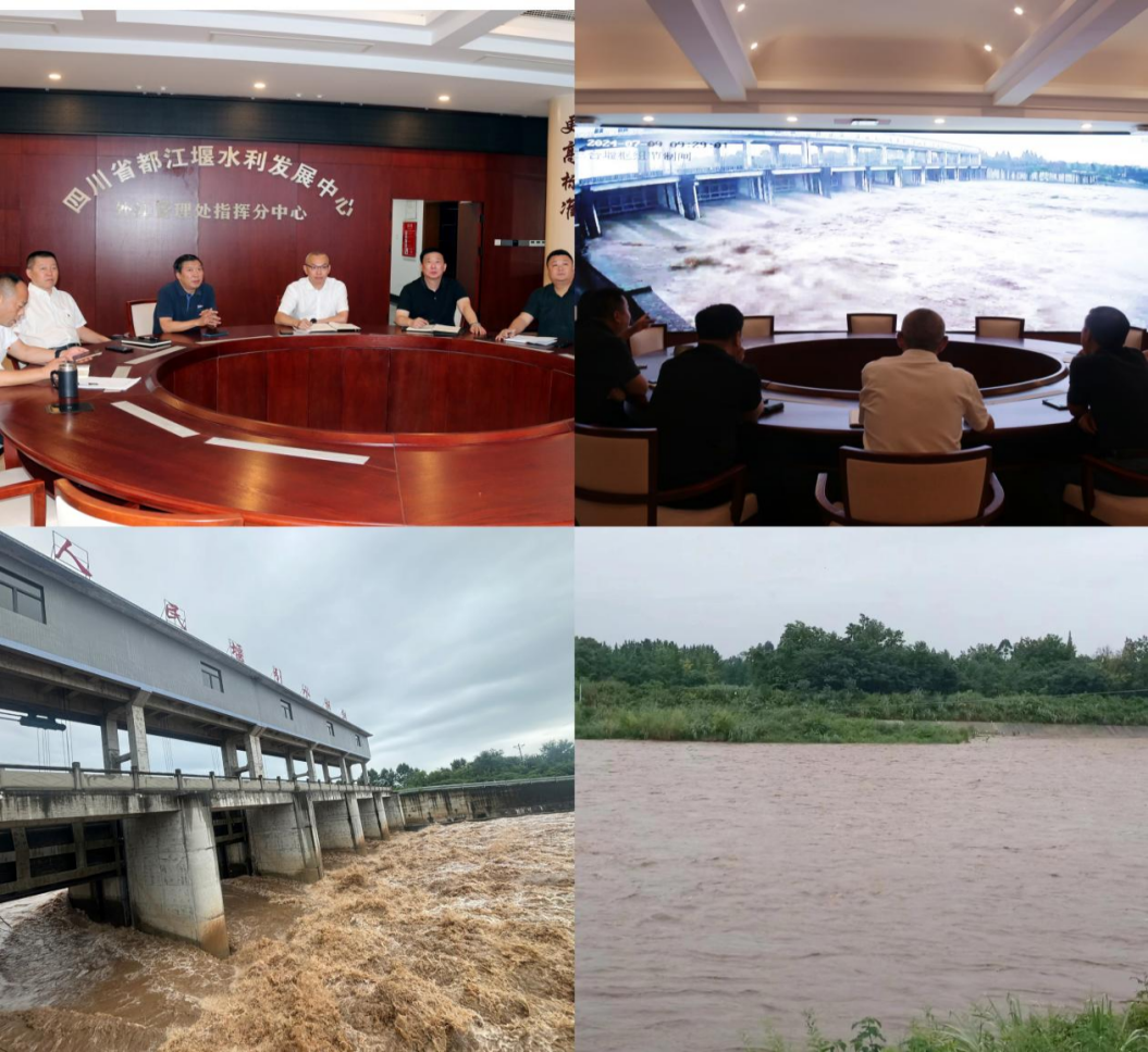 7月9日凌晨,外江灌区崇州市和都江堰市沿山地区普降暴雨,造成螃蟹河、石孟江、文井江、干五里河、味江河等河道洪水暴涨,洪水汇入河道,防汛形势严峻。外江灌区水旱灾害防御领导小组组长李增永迅速召集领导小组成员和防办相关部门,坐镇指挥分中心指挥防汛抢险工作。