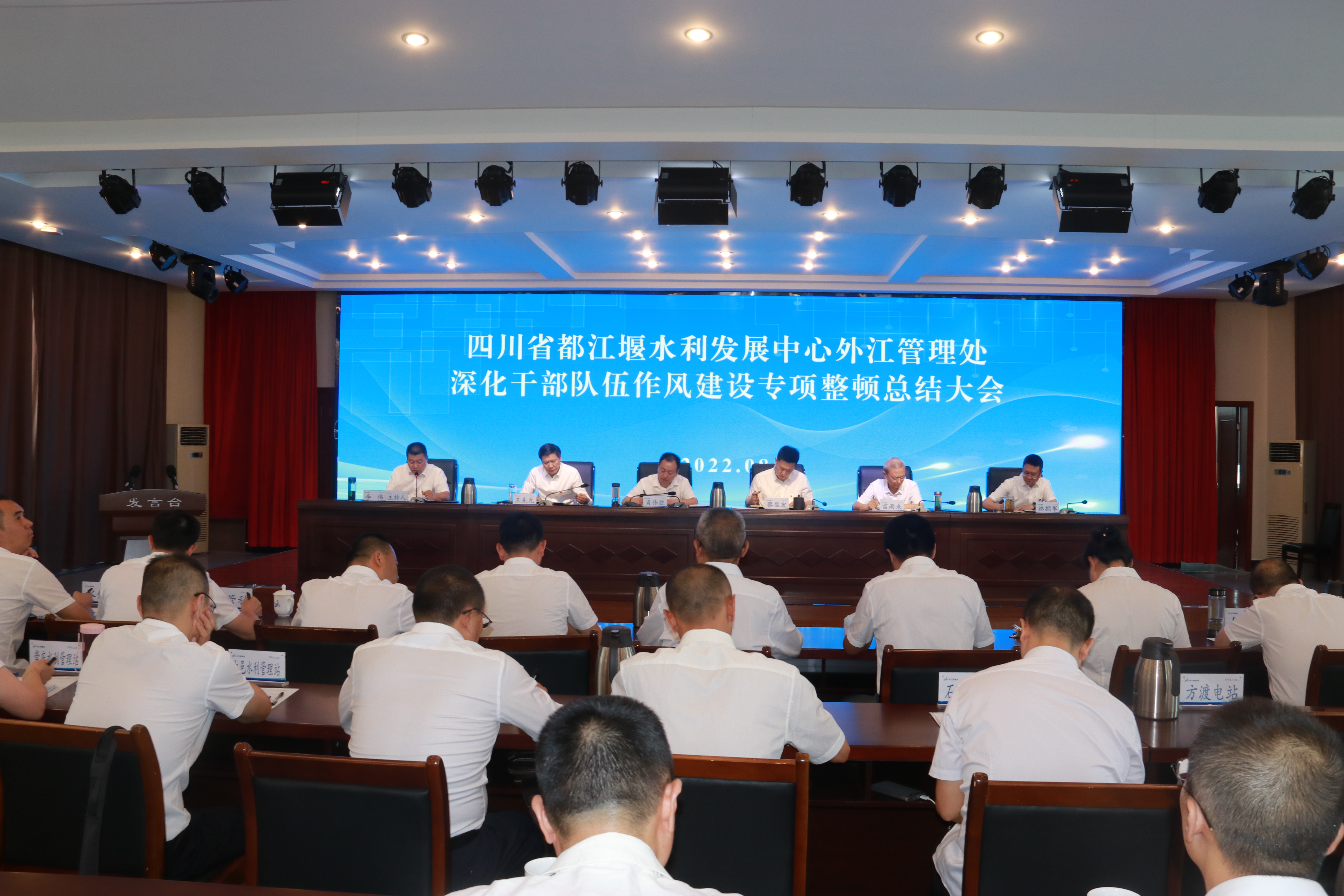8月22日,都发中心外江管理处召开了深化干部队伍作风建设专项整顿总结大会,全面总结外江管理处开展作风整顿上一阶段的工作,进一步巩固深化作风整顿成果,持之以恒推动作风整顿走深走实,以严明纪律严实作风推动灌区“六化”建设和三年行动方案落地落实。