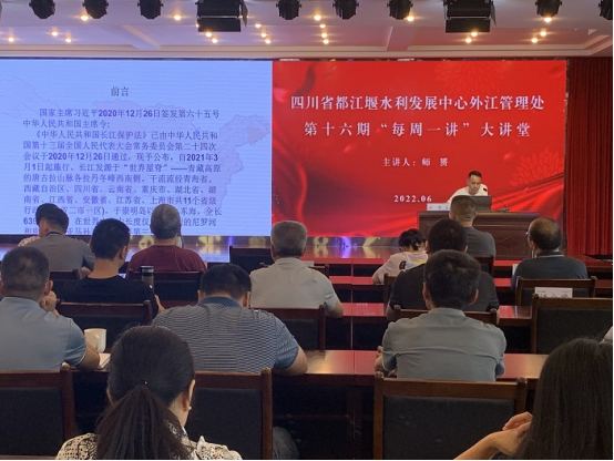 6月17日,外江管理处开展了第十六期“每周一讲”大讲堂活动,由水利保护科师赟同志向大家解读了长江流域治理保护和高质量发展的法治保障。
