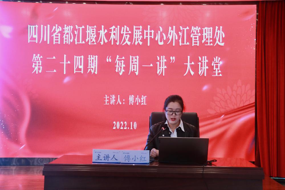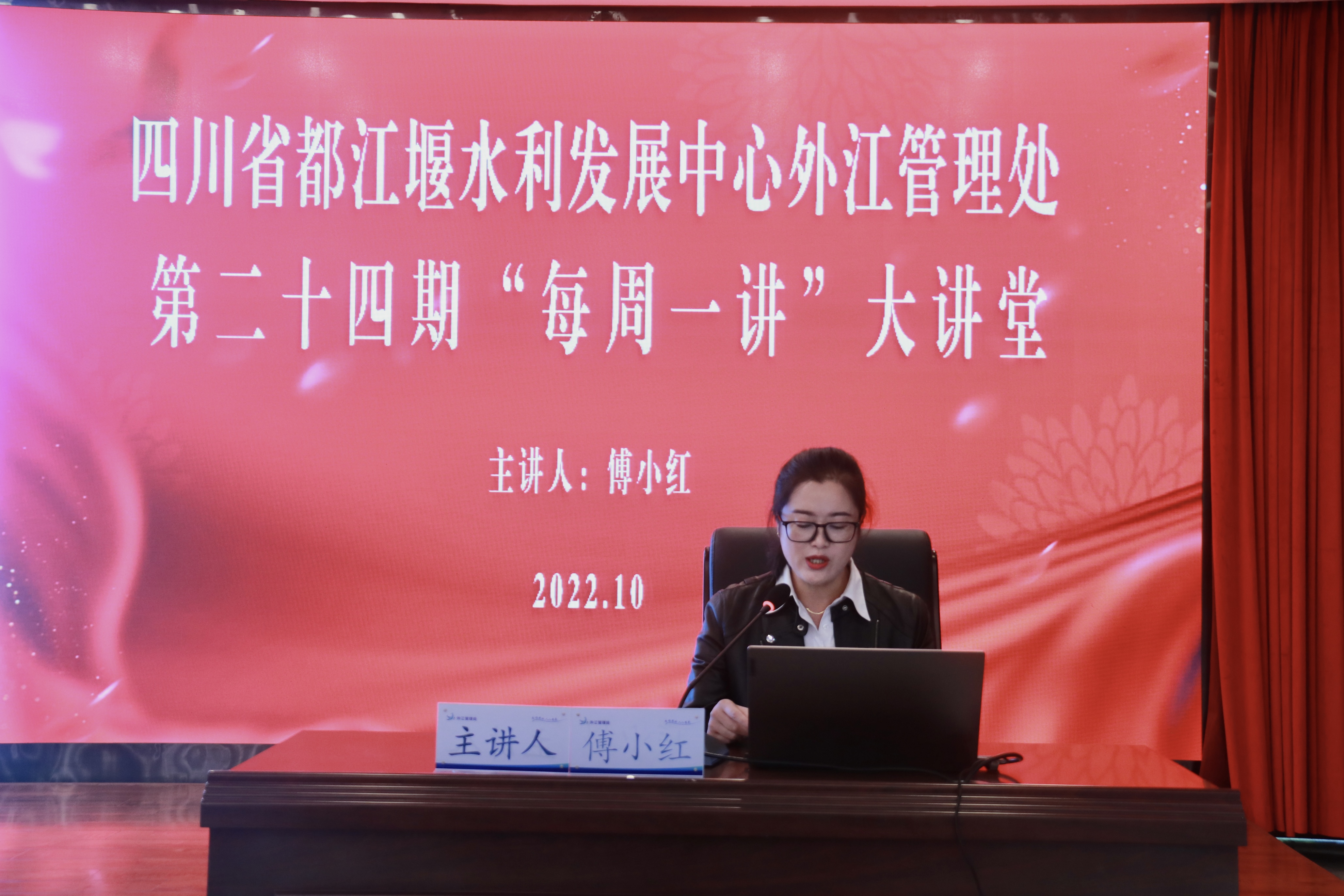 2022年防汛值班已于10月25日18时正式结束,在外江管理处全体干部职工共同努力下,外江灌区平稳度汛。为了抓住汛期的“热度”,崇庆水利管理站站长傅小红借助“每周一讲”活动平台,为大家带来了题为《西河防汛管理浅析》的精彩一课。