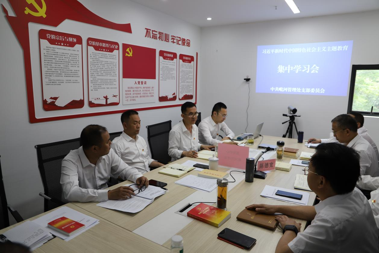 中心主题教育调度会议后,毗河管理处及时传达会议精神,安排部署全处近期的主题教育工作,扎实推进主题教育工作走深走实。5月19日,毗河管理处召开主题教育集中学习会,传达学习水利厅党组的《主题教育近期重点工作提示1-4》,处领导分别领学《主题教育应知应会第1-7期 》内容,全体党员干部集中自主学习《习近平著作选读》《习近平新时代中国特色社会主义思想专题摘编》,并集中收看《领航》,多种形式开展学习,做到工作学习两不误 ,两促进,两提高。