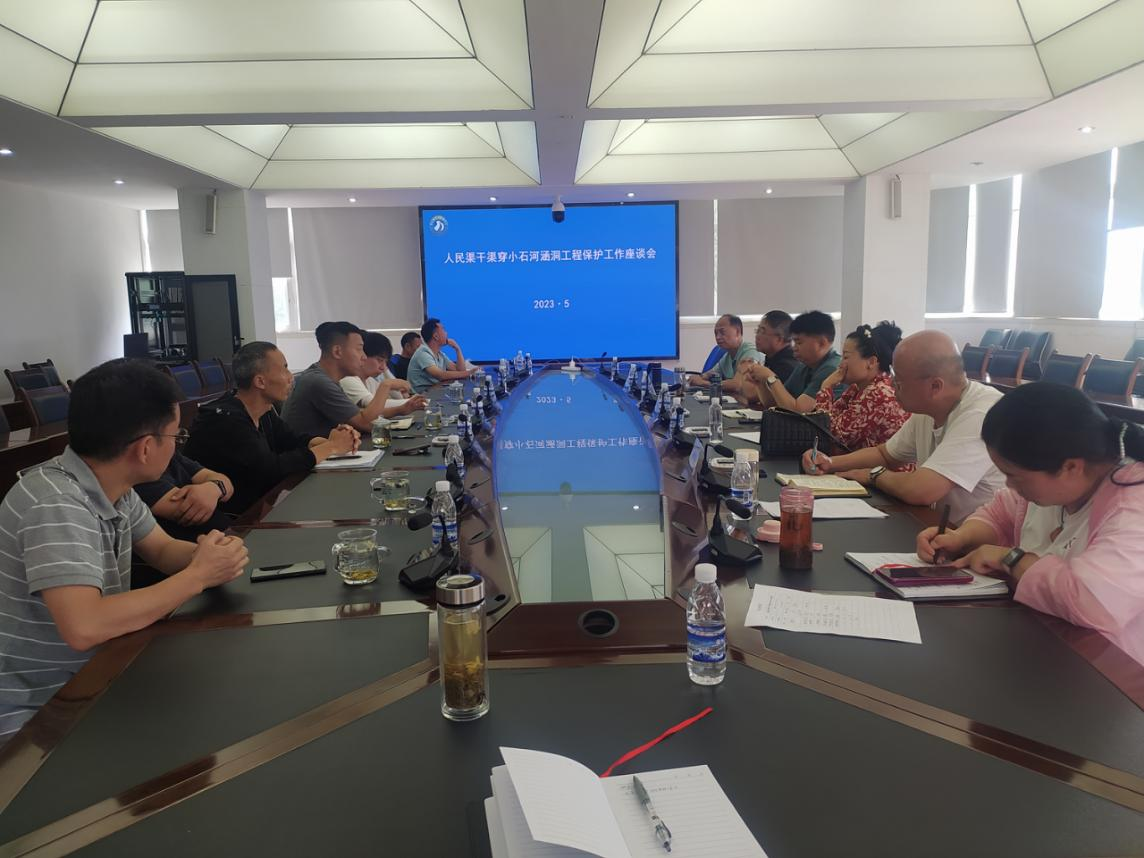 调研组现场查勘了人民渠干渠穿小石河涵洞工程情况,听取了彭州市2021年汛期灾损省县道隐患整治工程(一期)建设业主彭州市城投公司关于小石河涵洞下游保护范围内工程建设情况的汇报。现场调研后,调研组召集彭州市交通局、水务局、河长办、城投公司,施工单位相关负责人员在人民渠第一管理处二楼会议室召开人民渠干渠穿小石河涵洞工程保护工作座谈会。