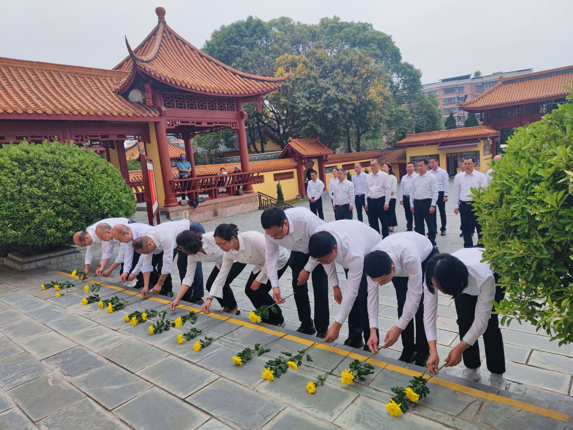 在黄继光纪念馆,雄壮高亢的旋律响起,全体处党委委员、党支部书记、主题教育领导小组办公室成员齐声高唱《中华人民共和国国歌》。黄继光雕塑下,党员干部整齐列队、庄严肃立、垂首默哀。