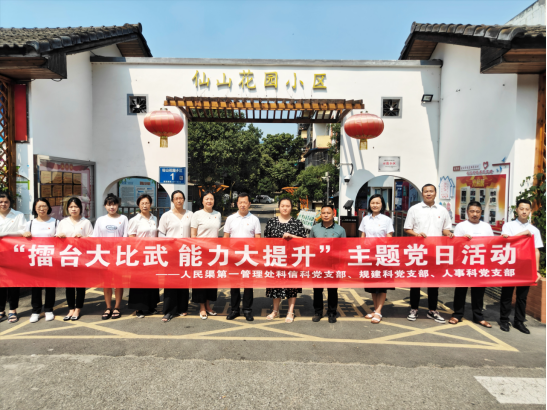 为深化交流互鉴,扩展学习半径,激活红色引擎,赋能高质量发展,扎实推动主题教育走深走实,7月18日,人民渠第一管理处科信科、规建科、人事科党支部赴彭州市葛仙山镇花园村党群服务中心举办“擂台大比武 能力大提升”主题党日活动,通过一次党建学习交流、一次专题学习、一次重温入党誓词、一次知识测试、一次红歌合唱等“五个一”的方式,教育引导党员干部坚定理想信念、筑牢政治忠诚,在灌区水利高质量发展中坚决走在前列、勇当尖兵、干出业绩、做好示范。