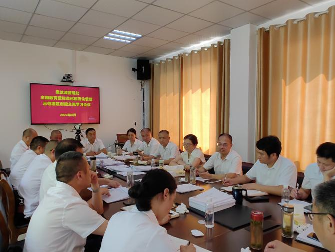 为检验主题教育“以学促干”成果,亮成绩、晒典型,进一步营造比学赶超良好氛围,近日,黑龙滩管理处组织开展基层管理站标准化规范化建设“亮晒比学”活动,通过现场调研和座谈会两个环节,扎实推动主题教育成果转化为实实在在工作成效。处领导班子带队,办公室、党群、运管、人事等科室及各基层管理站相关人员参与。