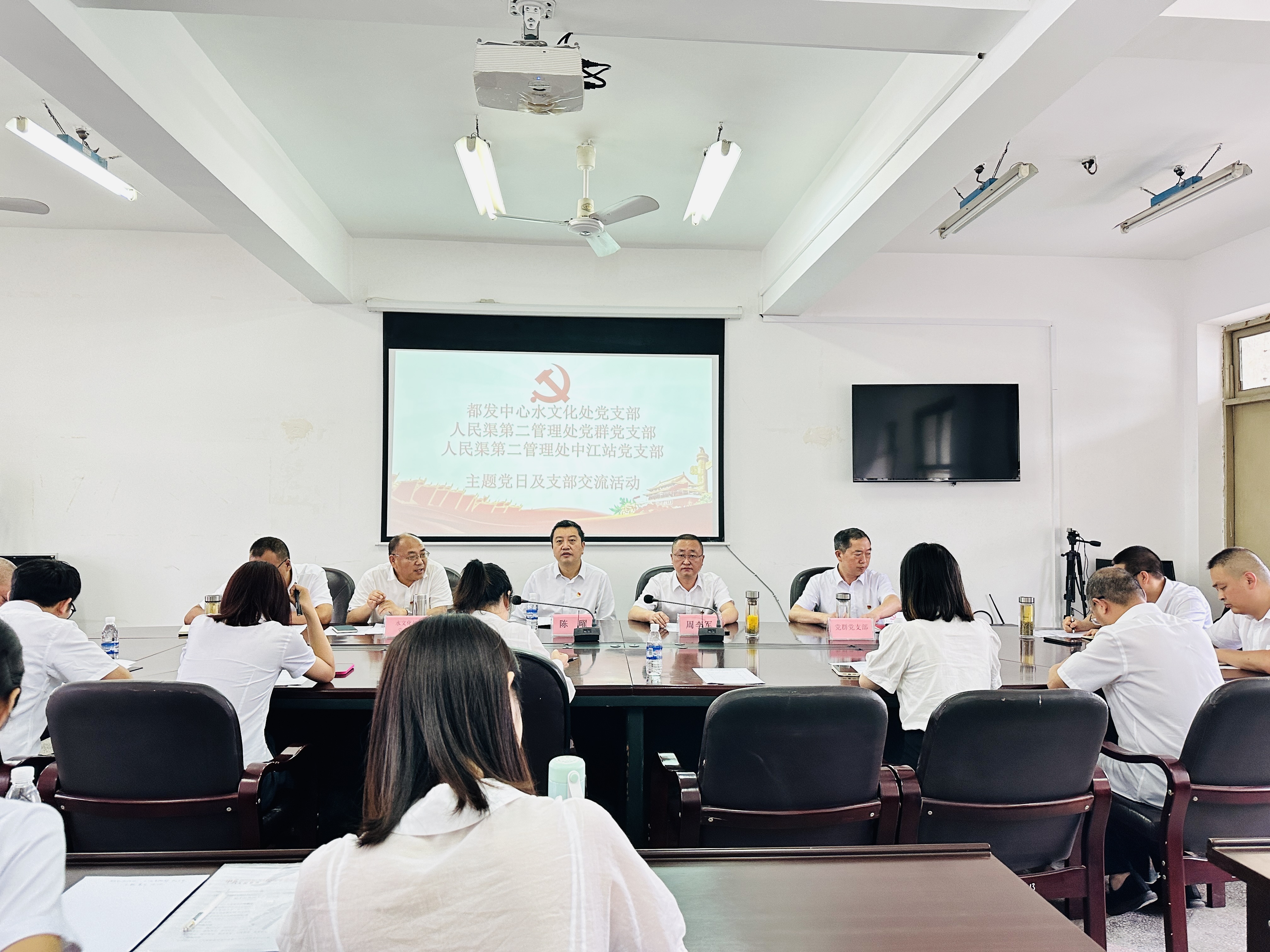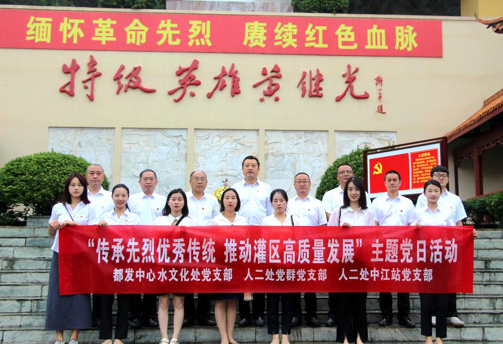 为推动学习贯彻习近平新时代中国特色社会主义思想主题教育走深走实,6月15日,都江堰水利发展中心水文化处党支部、人民渠二处党群党支部、人民渠二处中江管理站党支部联合开展“传承先烈优秀传统 推动灌区高质量发展”主题党日活动。中心党委委员、副主任陈矅,人民渠二处党委副书记周李军参加活动。
