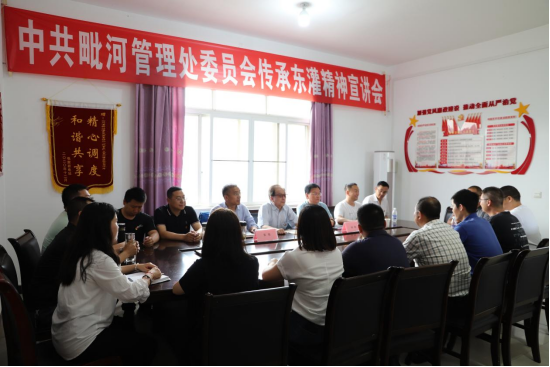召开毗河管理处传承“东灌”精神宣讲会。聆听“东灌”工程参与者代表、“东灌”指挥部党委书记、原简阳县委副书记、龙泉山灌区管理处原处长陶文忠讲述“东灌”故事,深刻感悟修建龙泉山隧洞、张家岩水库、三岔水库、石盘水库以及配套干渠、分干渠和支渠等“东灌”工程中简阳人民自力更生、艰苦奋斗、开拓创新、不怕牺牲、舍小家为大家、八方支援的“东灌”精神。