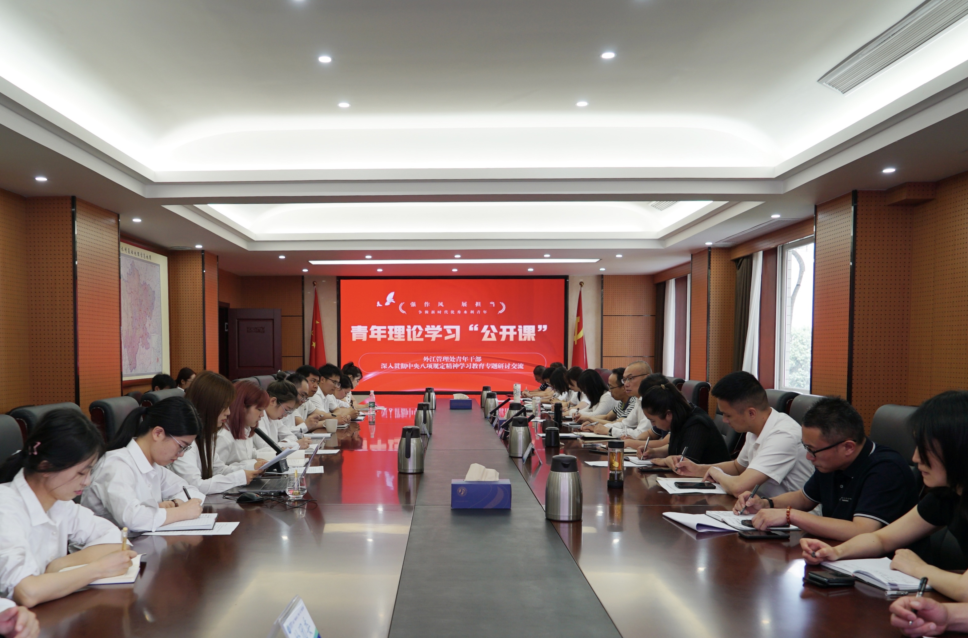 “党性修养好、党性坚毅,遵守党纪方能更加自觉。”公开课伊始,全体人员集体学习习近平总书记关于加强党的作风建设论述摘编,让青年干部们对作风建设的重要性与紧迫性有了更为深刻的理解,认识到这不仅是个人职业发展的必然要求,更是推动水利事业稳步前行的重要保障。紧接着,处团委书记、青年理论学习小组组长对中央八项规定精神开展专题宣讲,并组织观看“深入贯彻中央八项规定精神学习教育为什么年轻干部是重点”的专家讲解视频,强调年轻干部、新提拔干部以及关键岗位干部是学习教育的重点对象。通过详细解读规定条款与实际案例分析,进一步加深了青年干部对中央八项规定精神的理解,明确了行为规范与纪律红线。号召外江青年做中央八项规定精神的坚实践行者,将作风建设要求内化于心、外化于行,为推动水利事业发展提供坚实的作风保障。