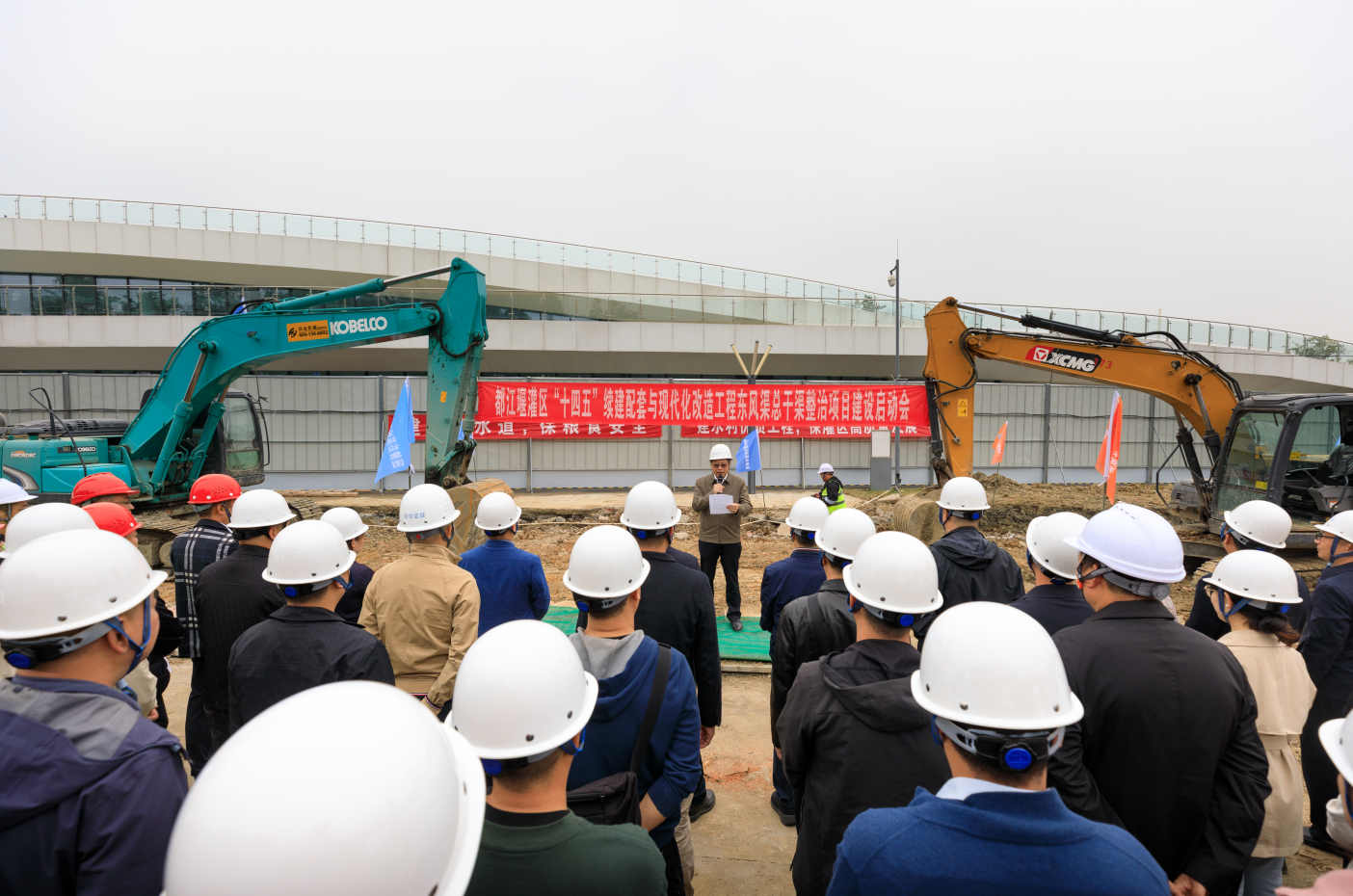 启动仪式现场,施工、监理、设计单位代表分别作表态发言。项目建设现场管理领导小组组长,东风渠管理处党委书记、处长杨斌宣布项目建设启动。