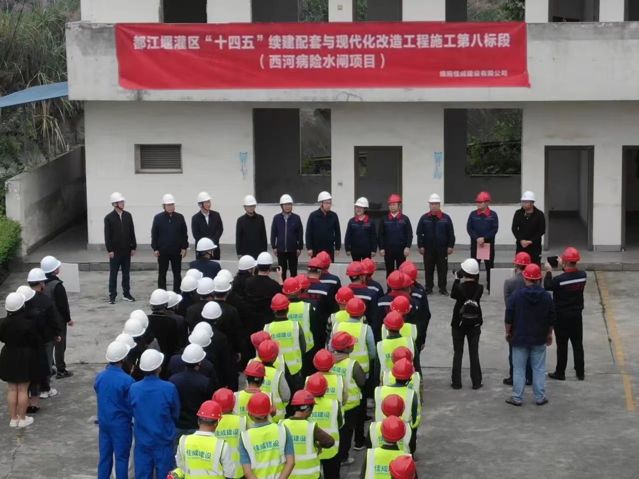 外江管理处全体处领导,建设现场管理办公室质量组西河项目小组、安全组、崇庆水利管理站协调组、综合后勤组、设计单位、监理单位、施工单位等约60人参加开工仪式。(供稿:外江管理处)