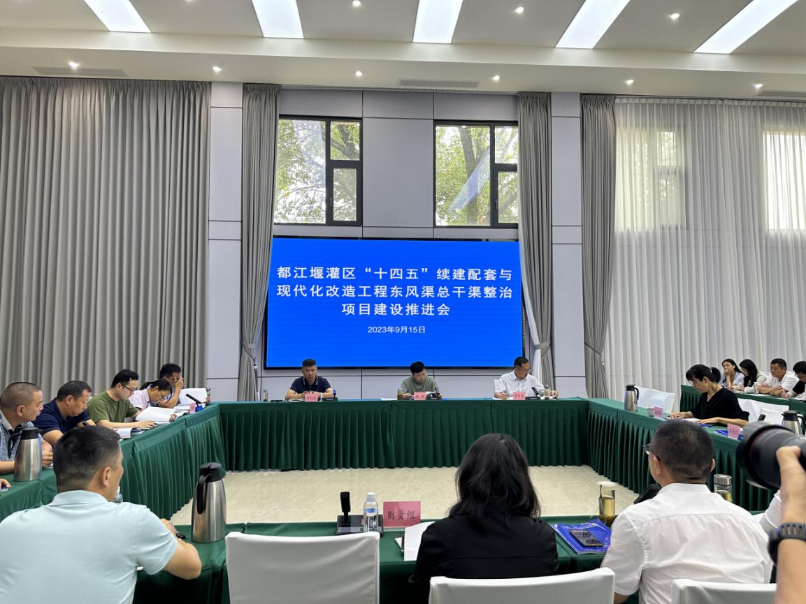 为全面落实水利厅、都江堰水利发展中心关于“十四五”大型灌区续建配套与现代化改造项目有关工作要求,确保都江堰灌区“十四五”续建配套与现代化改造工程东风渠总干渠整治项目(以下简称“东风渠总干渠整治项目”)顺利开工建设,9月15日,东风渠管理处组织召开东风渠总干渠整治项目建设推进会。会议由副处长贾军容主持,处党委书记、处长杨斌出席会议。