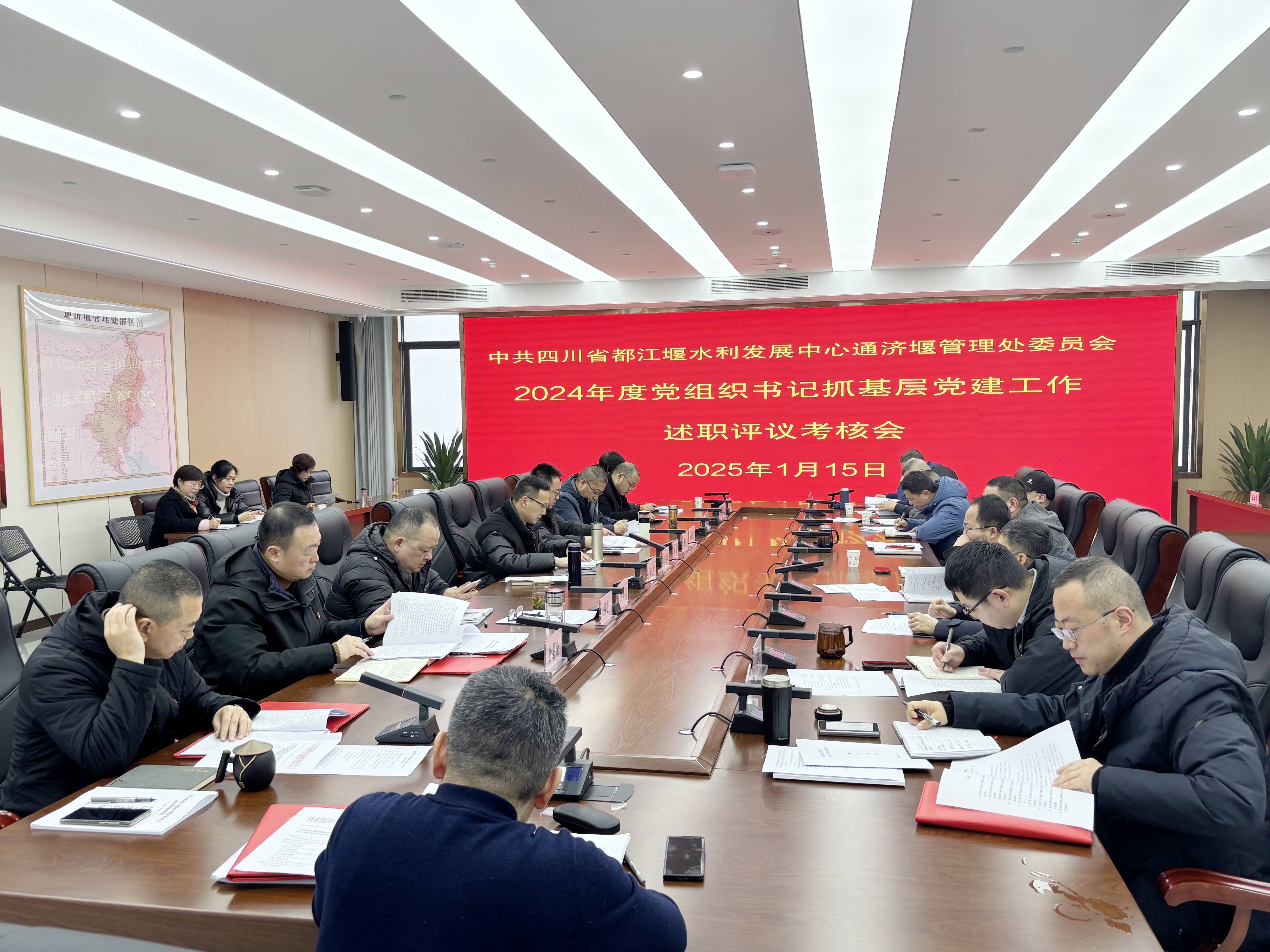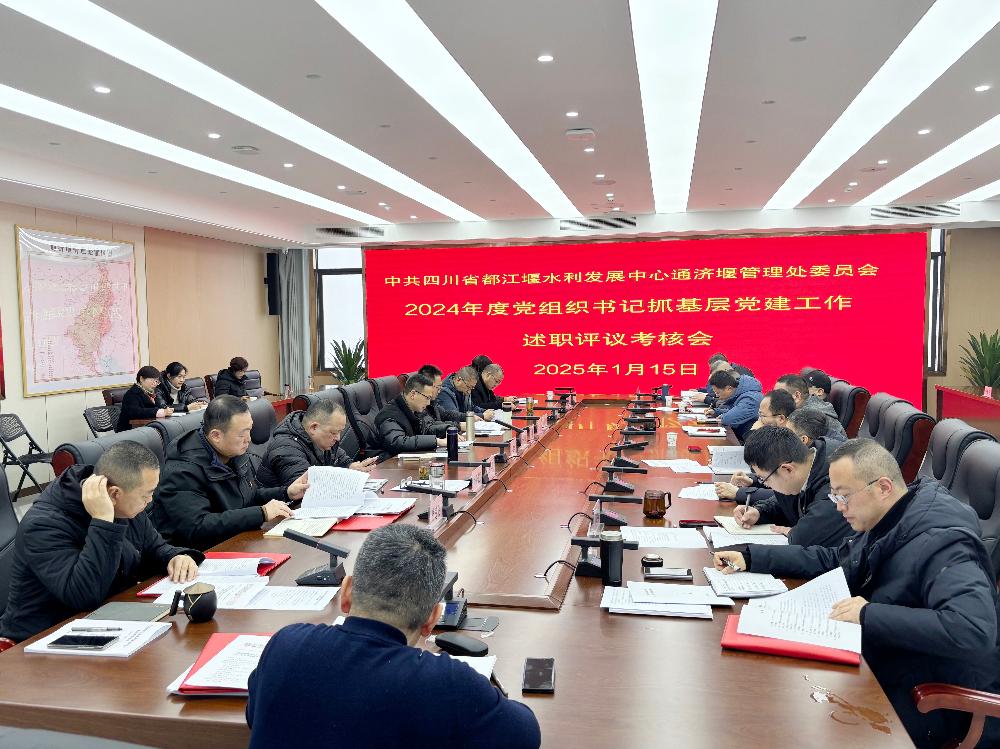 近日,中共四川省都江堰水利发展中心通济堰管理处委员会召开2024年度党组织书记抓基层党建工作述职评议考核会。处党委委员、中心纪检四室专员、处属党支部书记和委员、党员代表参加会议。会议由处党委委员、副处长李忠孝主持。