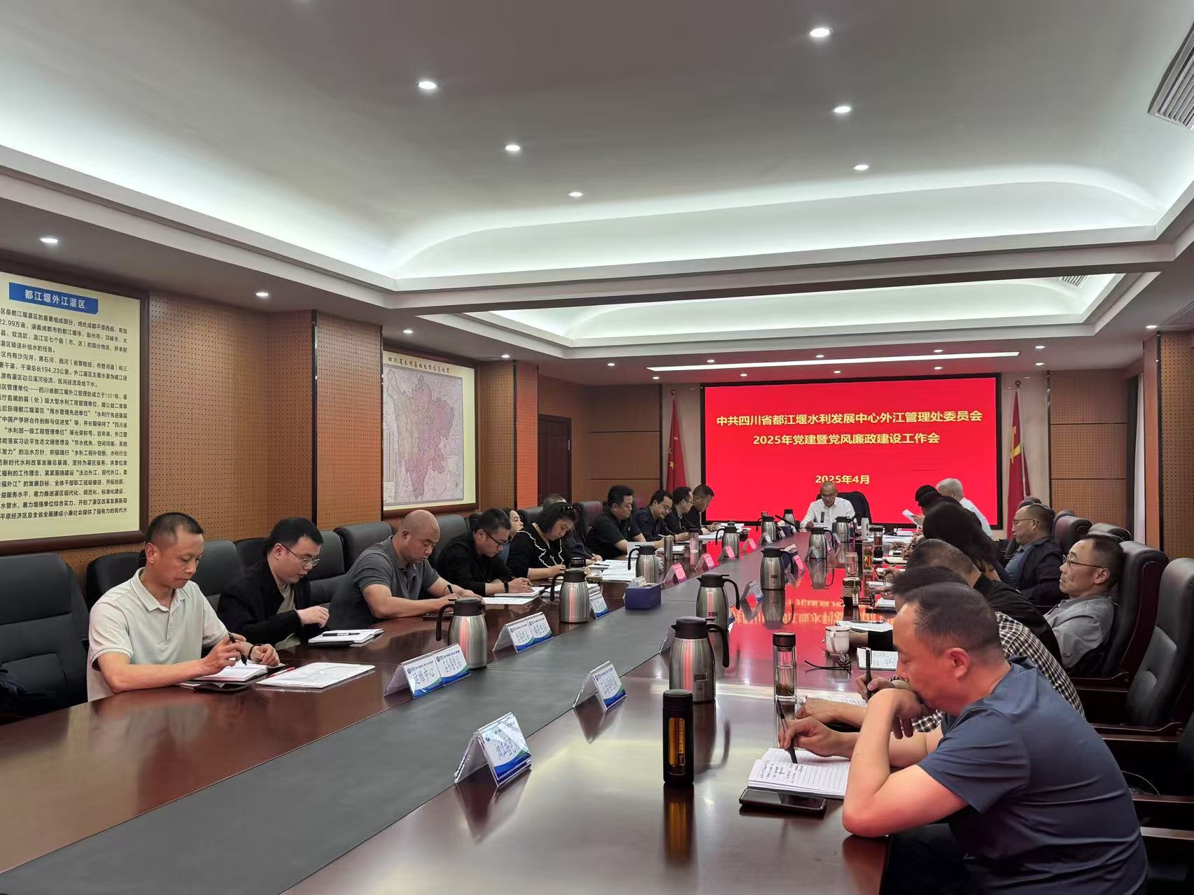 2025年4月11日,外江管理处召开党建暨党风廉政建设工作会议,深入贯彻落实重要精神,全面部署党的建设和党风廉政建设重点工作,为水利事业高质量发展筑牢政治根基。