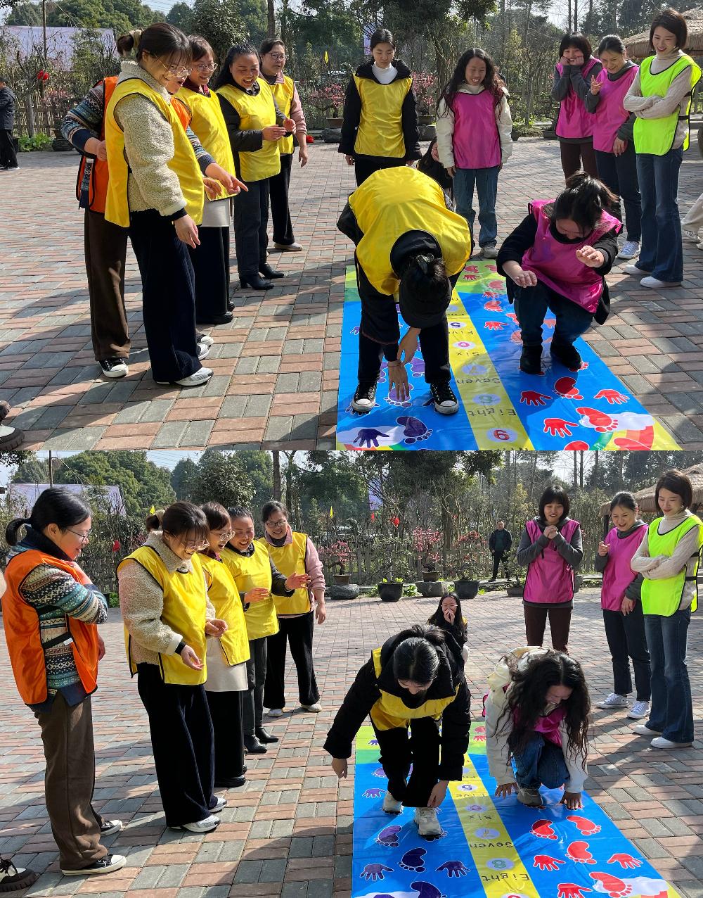 在“手脚并用”项目中,队员们通过精准指令与默契配合,在五彩方格间踏出和谐韵律。