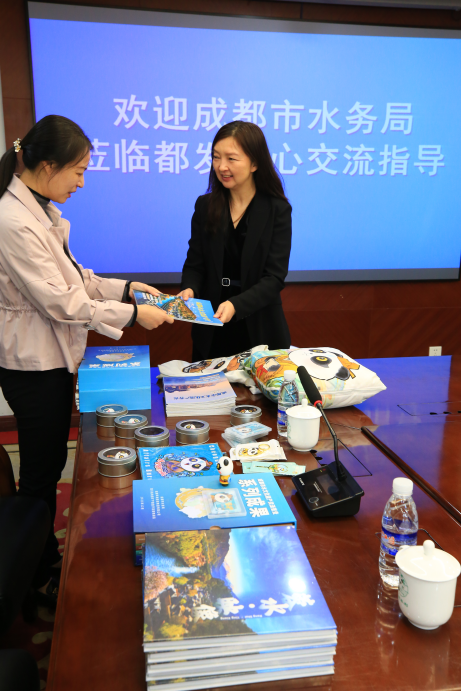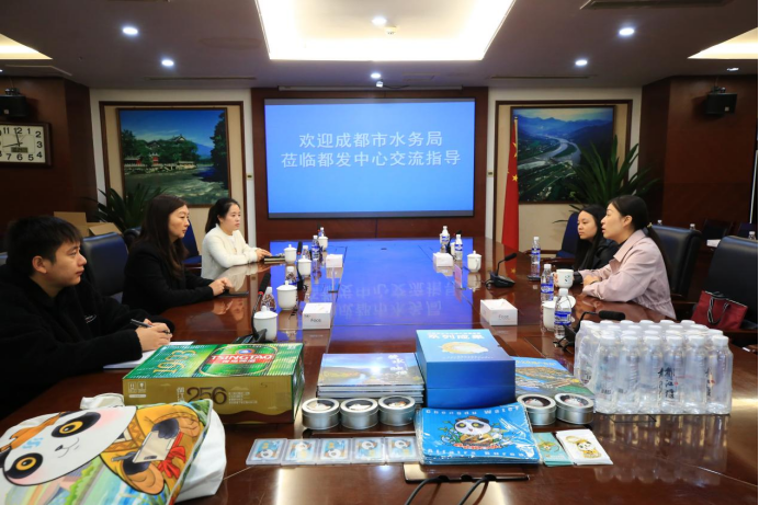 10月25日,成都市水务局产业发展处(调研室)处长熊文兰一行到四川省都江堰水利发展中心,与中心规建处、水文化处就水文化遗产保护、文创产品开发、建设“天府蓝网”系统工程对促进都江堰灌区农商文体旅深度融合的可能性等方面进行了座谈交流。