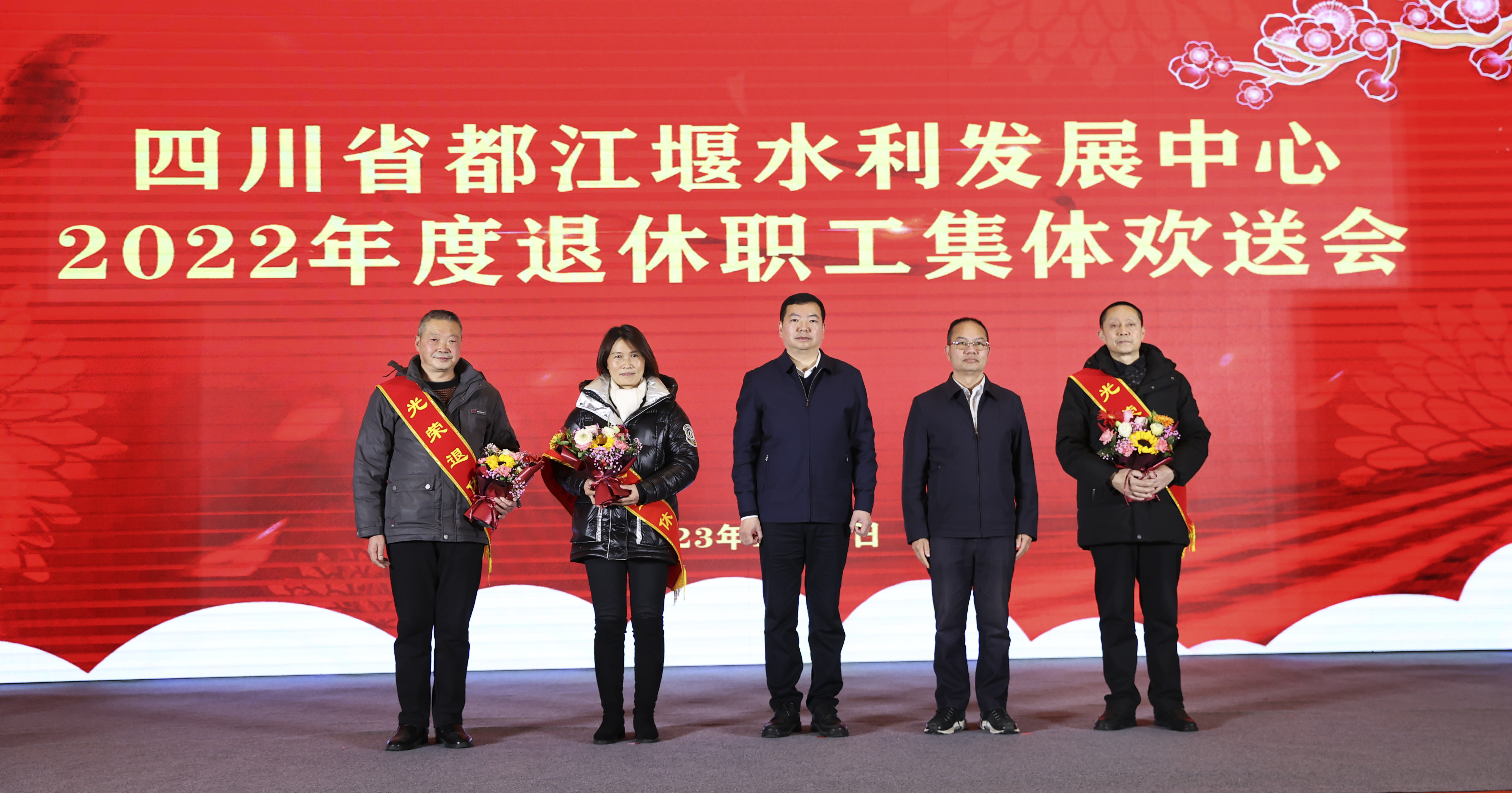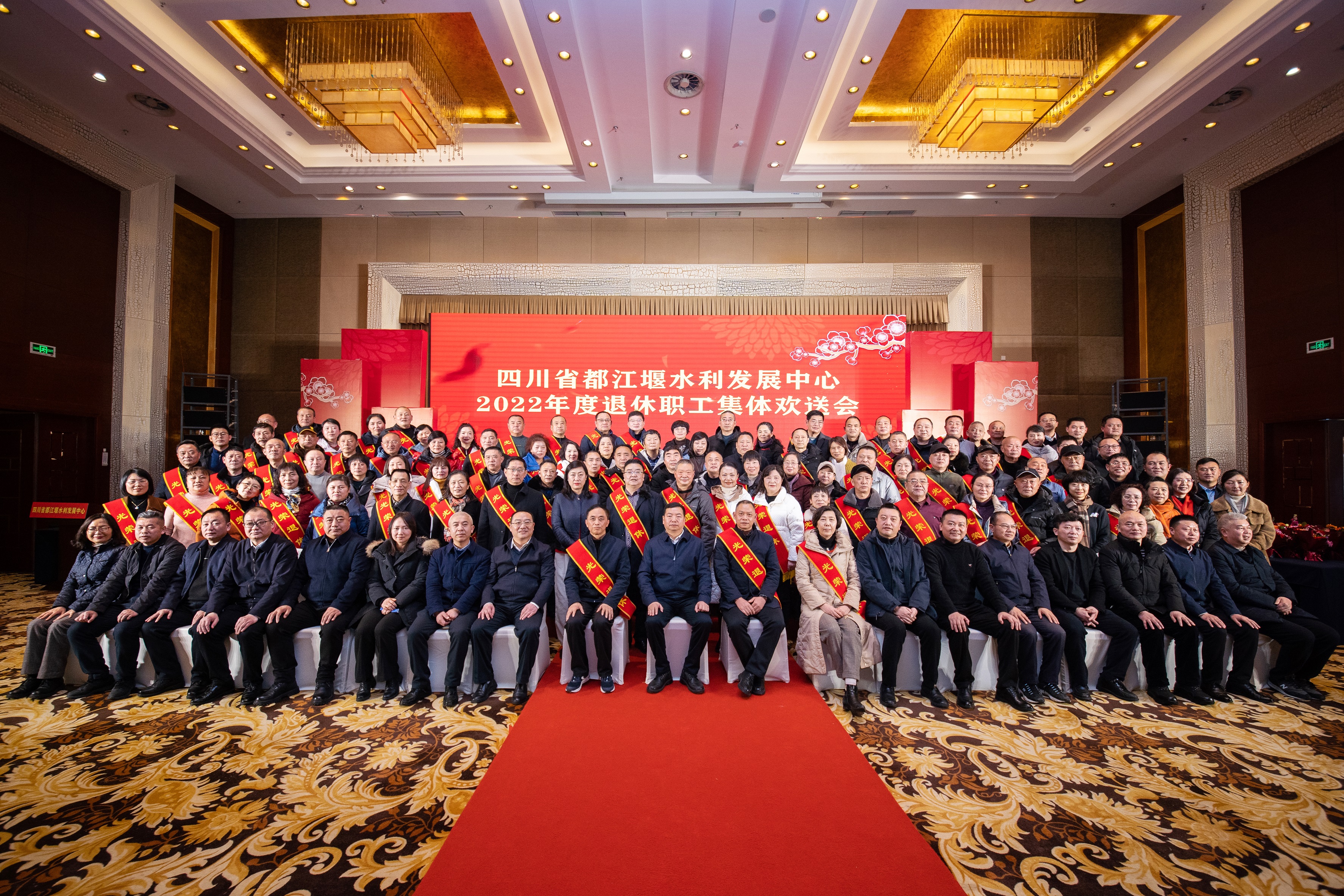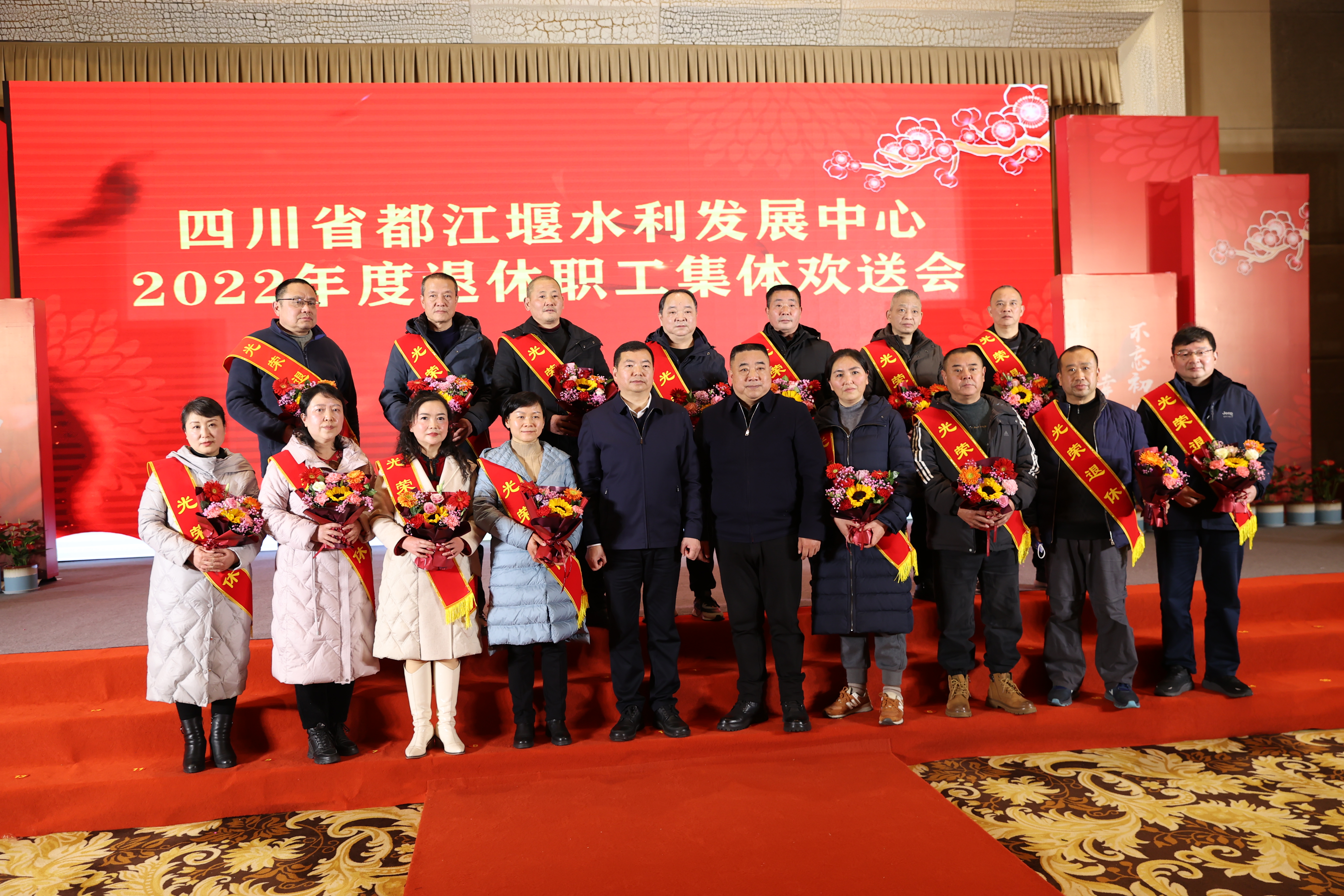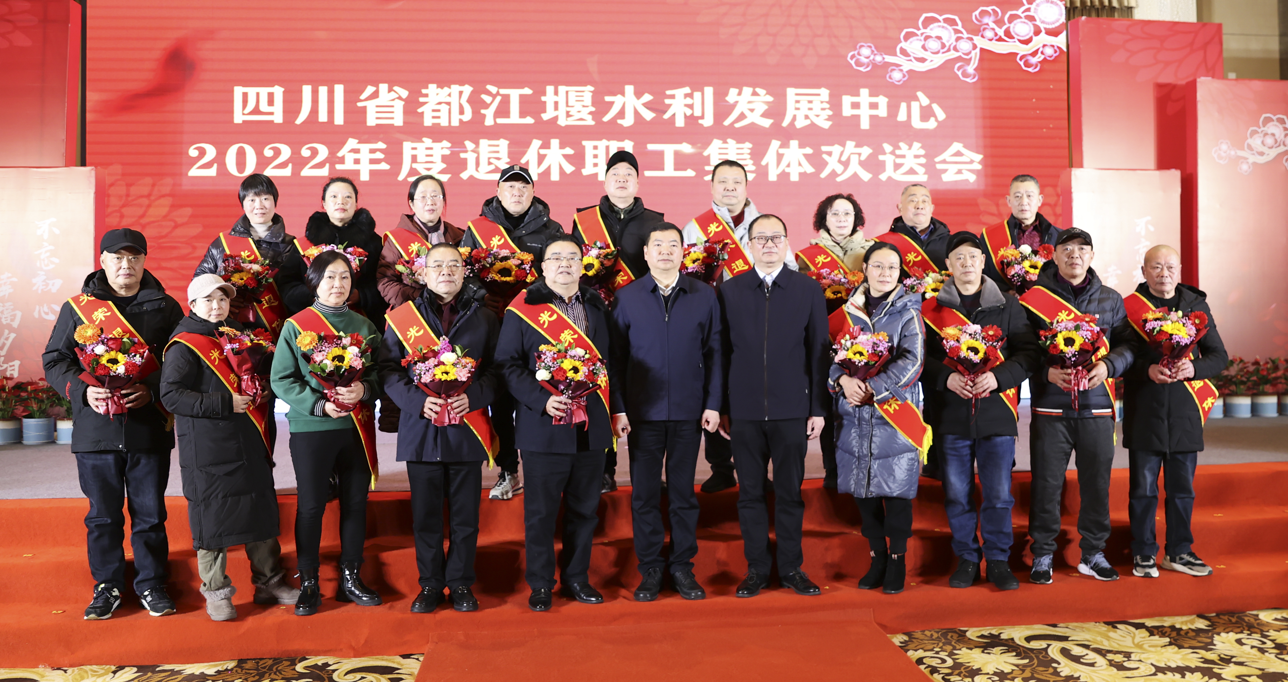 莫道桑榆晚,为霞尚满天。值此兔年春节来临之年,1月15日下午都江堰水利发展中心在都江堰市为2022年退休的108名干部职工举行集体欢送会。中心班子成员,灌区各处主要负责人与退休干部职工依依话别。中心党委委员、副主任陈万林主持欢送会。