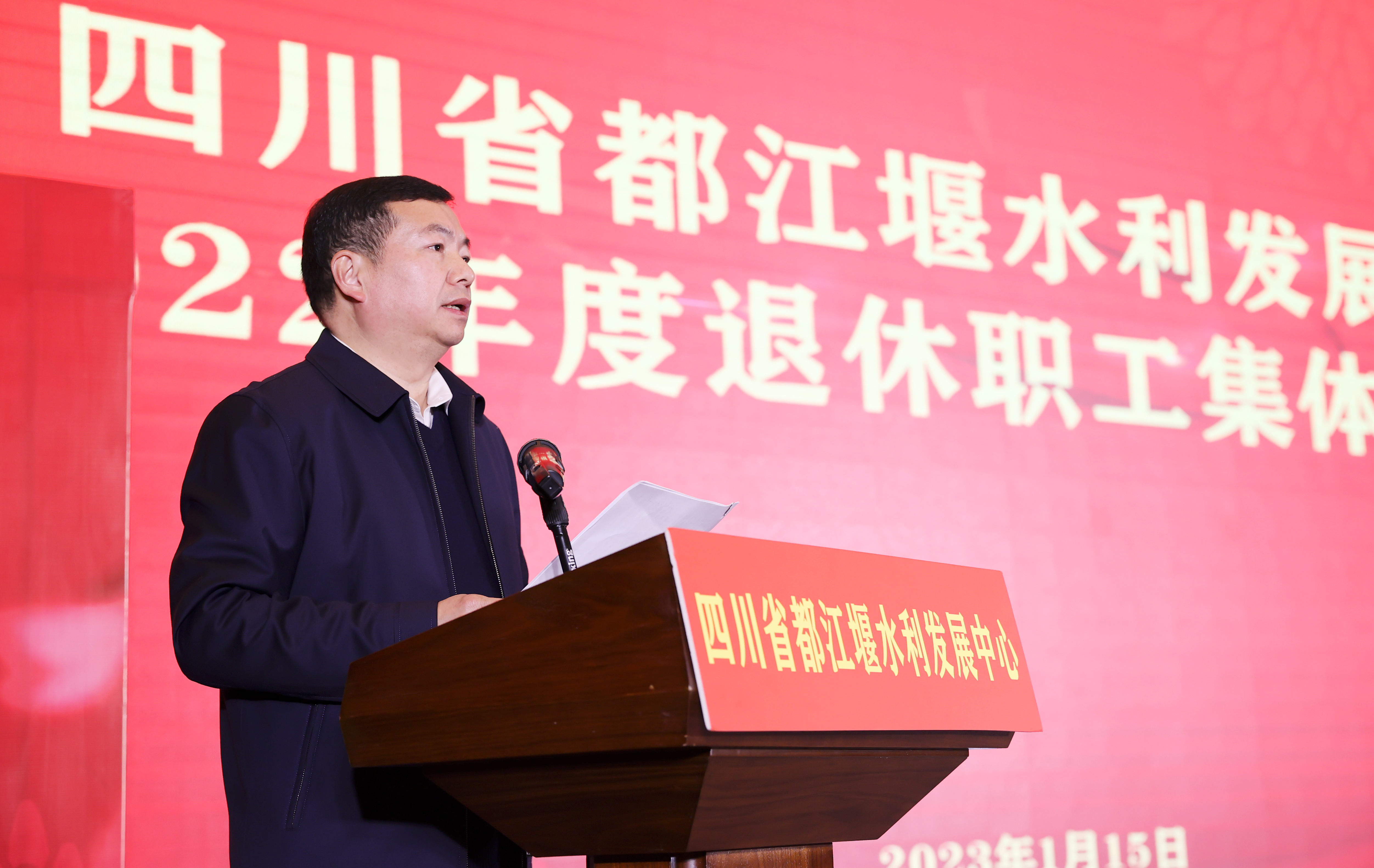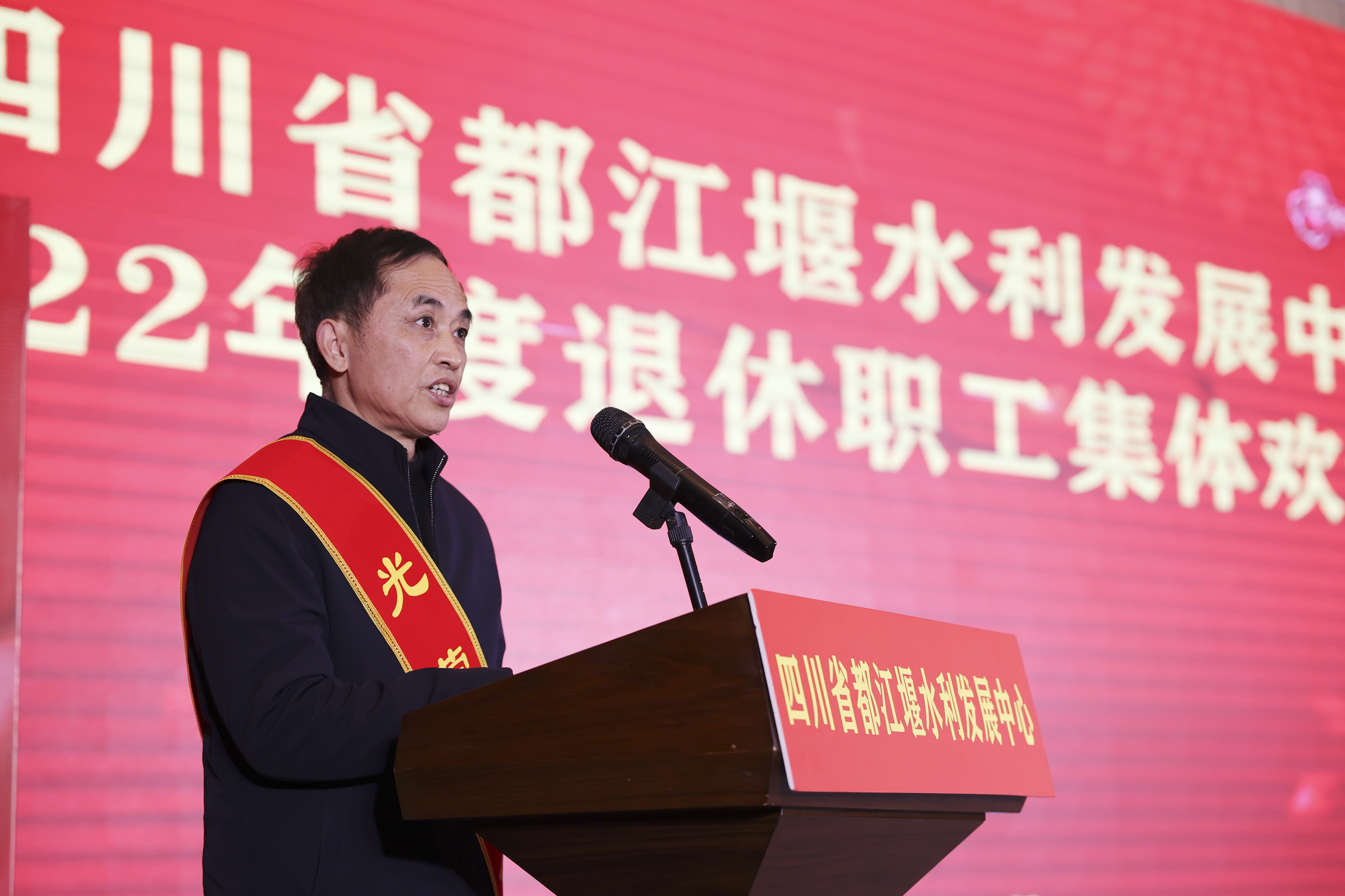 中心党委书记、主任朱泽华在欢送会上发表致辞。他对光荣退休的干部职工表示祝贺,对他们为都江堰灌区发展作出的贡献表示崇高敬意和衷心感谢。
