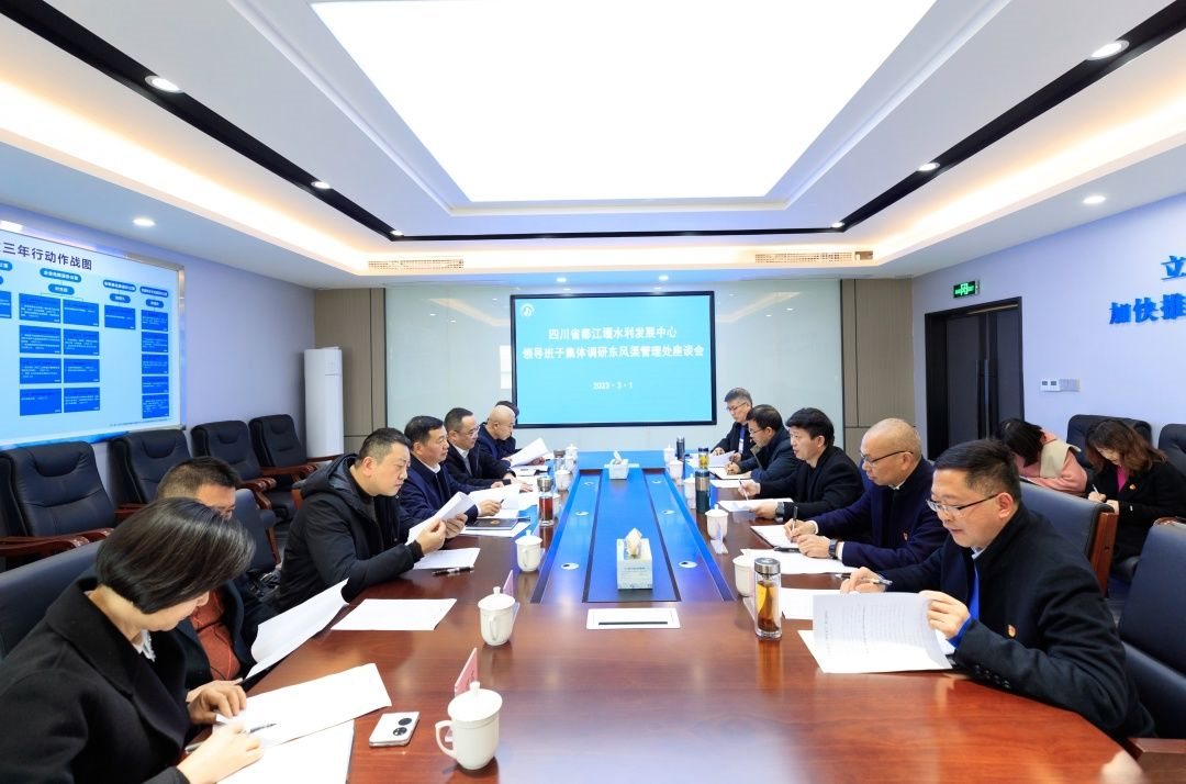 3月1日,省都江堰水利发展中心党委书记、主任朱泽华带领中心领导班子到东风渠管理处开展集体调研,专题研究了东风渠管理处财务执行预算安排、投建运管“两手发力”试点等工作。