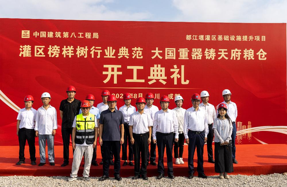 8月8日,在挖掘机的阵阵轰鸣声中,都江堰灌区防汛运维物资仓库第一坯黄土被成功铲起,标志着该项目正式动工建设。水利厅党组成员、副厅长刘辉,省都江堰水利发展中心党委书记、主任朱泽华,成都经开区党工委委员、管委会副主任赵巍然,中国建筑西南设计研究院有限公司四院总建筑师、项目负责人季如艳,中建八局西南公司党委副书记、总经理周英杰出席开工典礼。