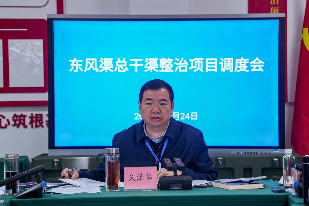 10月24日,东风渠总干渠整治项目调度会在项目建设指挥部召开,听取参建各方开工准备情况,安排部署下阶段攻坚工作。中心党委书记、主任朱泽华主持会议并讲话。