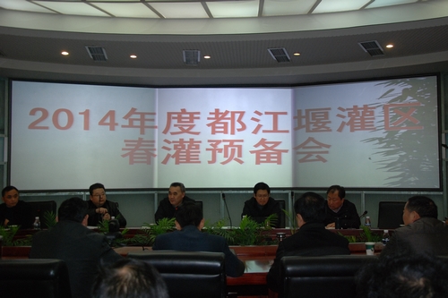 2014年1月14日,都江堰管理局召集灌区各市水务局和各管理处在都江堰管理局召开了都江堰灌区2014年春灌预备会议。并邀请了省农水局领导参加会议,管理局班子成员及局属各部门负责人也参加了会议。会议由刘道国局长主持,首先提出了今年春灌用水工作会议召开的初步方案。尹邦军副局长宣读了《都江堰灌区2014年春灌会议工作报告(征求意见稿)》,与会代表就2014年春灌会议工作报告(初稿)和会议的时间、地点、规模以及水管单位体制改革、水毁资金等问题进行了交流发言。