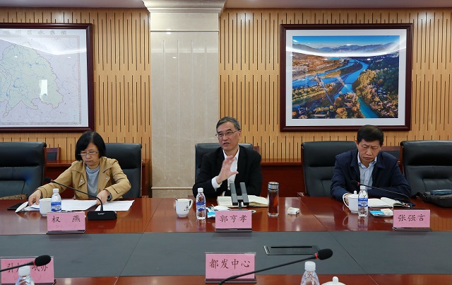 4月18日,水利厅党组书记、厅长郭亨孝带队来都发中心调研,专题研究了都发中心官方LOGO设计、总部基地及都江堰灌区运维抢险中心规划建设工作。厅领导张强言、权燕陪同调研。