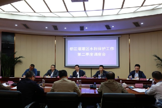 为深入贯彻落实四川水利高质量发展“3226”工作思路“两年强推进”工作目标,打造“国际知名、国内一流”灌区榜样,分析研判当前都江堰灌区水利保护工作面临的形势,进一步压实责任、明确目标、任务落实。5月18日下午,都江堰灌区水利保护工作第二季度调度会在都发中心召开,旨在对当前和下一阶段水利保护各项工作再动员、再部署,确保年度目标任务圆满完成。都发中心党委书记、主任朱泽华,副主任杜春明出席会议。会议由都发中心水利保护处处长李杰主持。