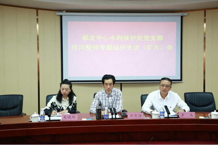 为深入贯彻落实厅党组、中心党委深化干部队伍作风整顿工作精神,5月6日,水利保护处党支部召开了作风整顿专题组织生活(扩大)会。都发中心党委副书记万忠海出席会议,中心机关各党支部书记、灌区各管理处党群科负责人到会指导。会议由水利保护处党支部书记、处长李杰主持。