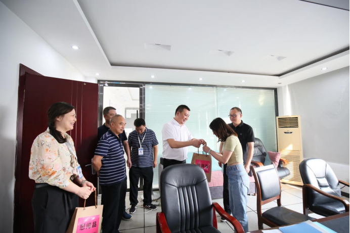在人民渠第一管理处彭州水利管理站马牧河养护段、人民渠第一管理处管理处机关、人民渠第一管理处水利调度中心等地,吴鉴副主任亲手将带着中心党委领导关心的矿泉水、消暑慰问品送到一线干部职工手中,勉励大家在继续做好抗旱保供的同时,积极做好旱涝急转下的防汛工作。