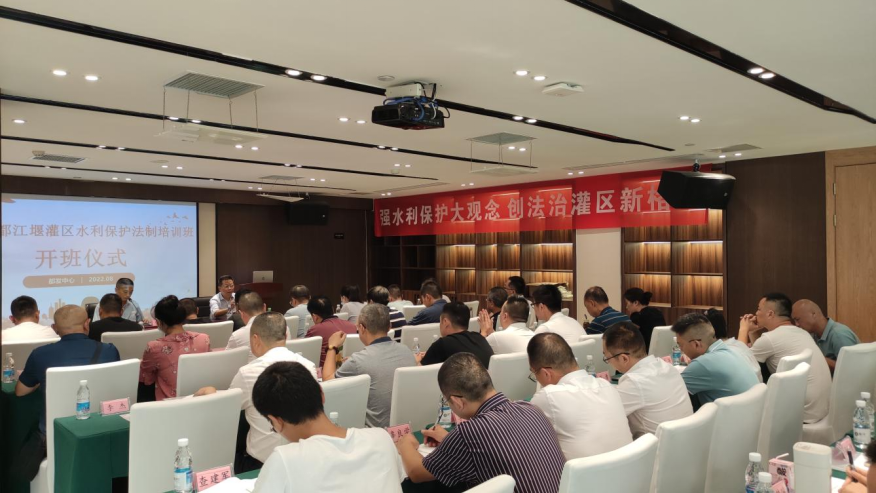 此次培训班,是按照年初工作计划,结合水利保护赋予的职责职能,“一体化”后而举办的第一期灌区水利保护法制培训。特别邀请了省行政执法协调监督局局长余越峰、省河湖中心党委副书记董大志、成都市人民检察院第八检察部一级检察官汤博为进行授课。