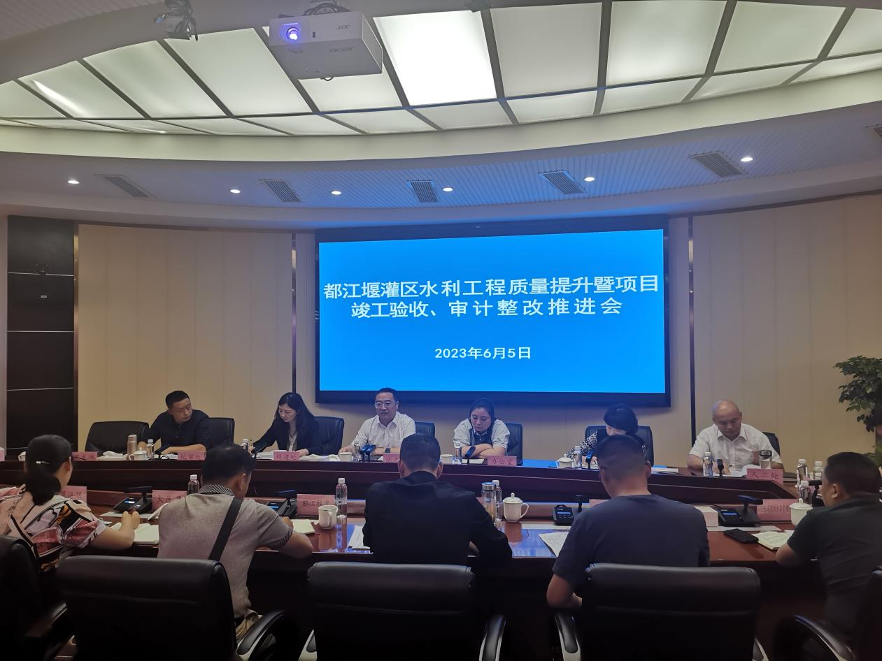 为深入开展学习贯彻习近平新时代中国特色社会主义思想主题教育,坚持“以学促干”加快推进都江堰灌区“十三五”续建配套与节水改造项目审计发现问题的整改工作,2023年6月5日,都发中心召开都江堰灌区水利工程质量提升暨项目竣工验收、审计整改专题推进会。会议通报了审计整改要求及验收工作总体进展,听取了各项目单位情况汇报,并就相关整改问题提出了工作建议和指导。受中心党委书记、主任朱泽华委托,中心党委委员、副主任陈万林主持会议并讲话。陈万林副主任要求: