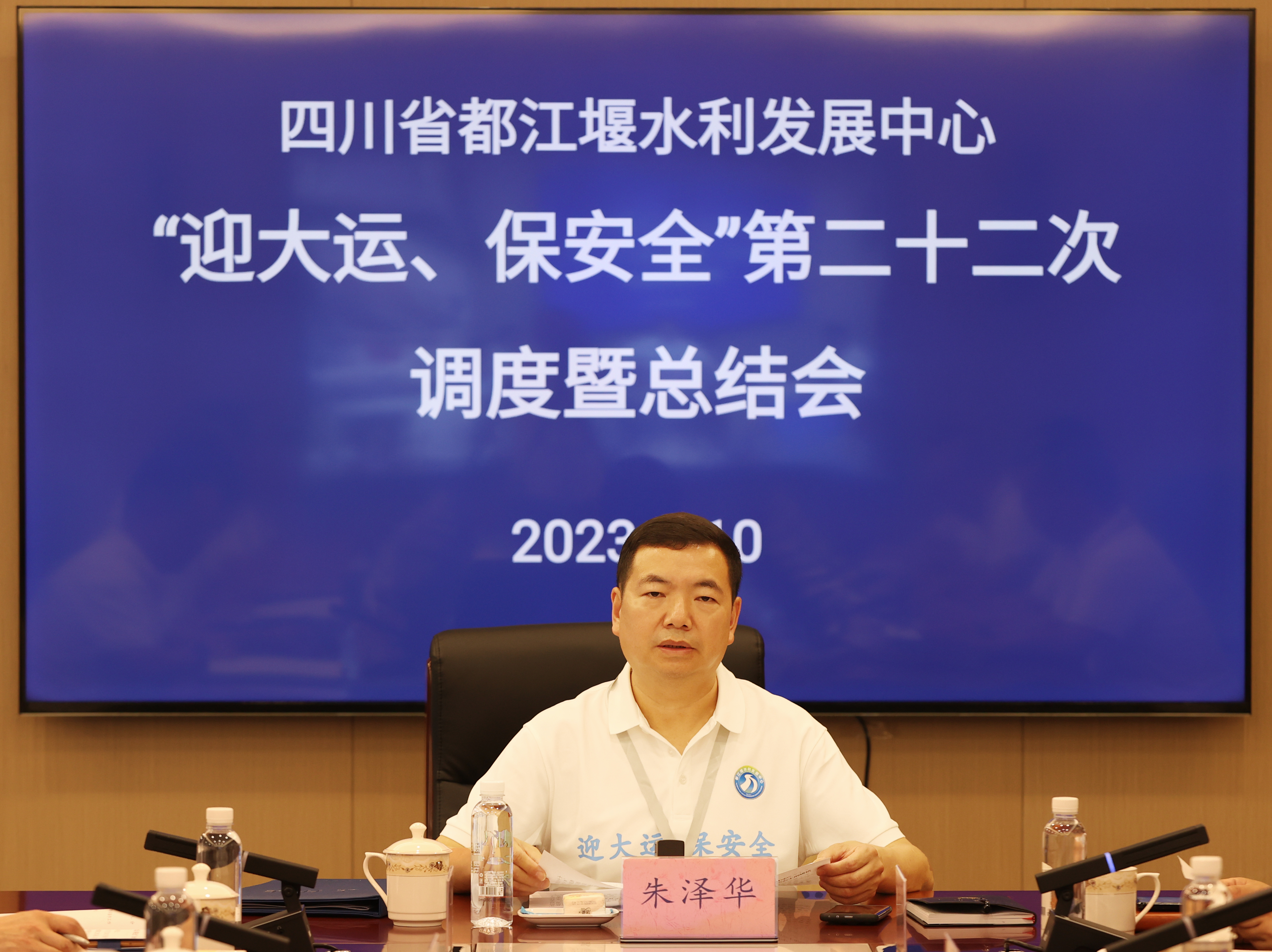 在成都第31届世界大学生夏季运动会胜利闭幕后的第二天,省都江堰水利发展中心历时22天的“迎大运、保安全”涉水保障工作于8月10日圆满收官,并举行工作总结会。中心党委书记、主任朱泽华主持会议并讲话。