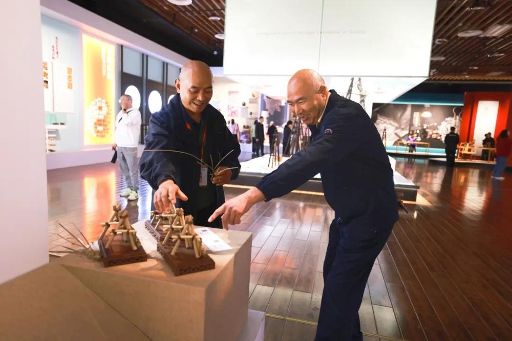 当天,极具都江堰特色、代表中国古代先进水利工程技术的“都江堰四大传统堰工技术——竹笼、杩槎、羊圈、干砌卵石”非物质文化遗产项目在主会场非遗馆惊艳亮相,向八方来客展示都江堰“因势利导、道法自然”的治水智慧,受到了现场观众的喜爱与夸赞。这是都江堰四大传统堰工技术自成功申报为省级非物质文化遗产项目后首次进入国际非遗展会。