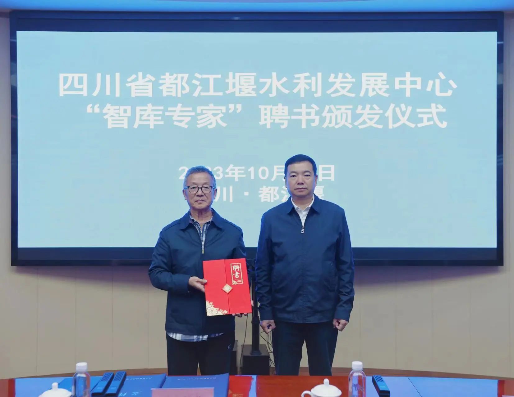 会上,朱泽华为什邡市政协原副主席、四川省政协文史研究员郭辉图先生颁发了“智库专家”聘书。同时,会议邀请了中国水科院遗产保护重点实验室主任李云鹏,共同研讨都江堰水文化建设。