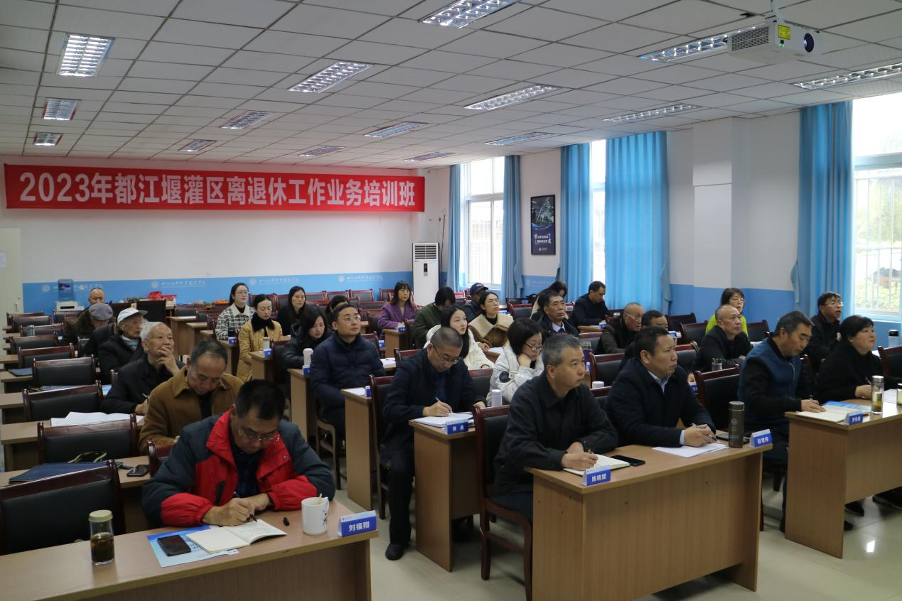 为进一步提升水利系统离退休工作人员业务素质和工作水平,都江堰水利发展中心于11月16日在都江堰水利职业学院李冰继续教育学院都江堰校区,举办2023年度离退休工作业务培训班。本次培训邀请省委老干部局专家作专题辅导,中心离退处、灌区各离退科部门负责人及业务骨干、中心机关退休支部支委共39人参加培训。