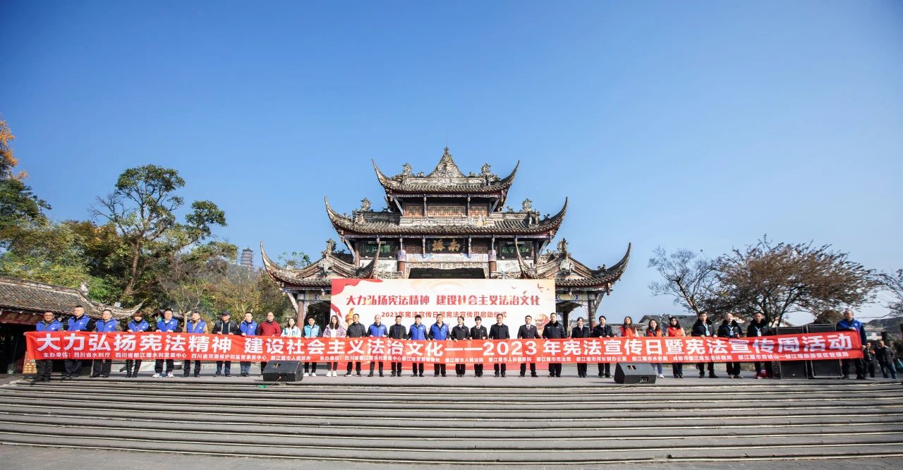 今年12月4日是第十个国家宪法日。上午十点,都江堰市南桥广场人头攒动,由四川省水利厅、四川省都江堰水利发展中心、都江堰市人民政府、四川省河湖保护和监管事务中心联合主办的2023年宪法宣传日暨宪法宣传周启动仪式在这里举行。都江堰渠首管理处作为承办单位之一,深度参与活动。