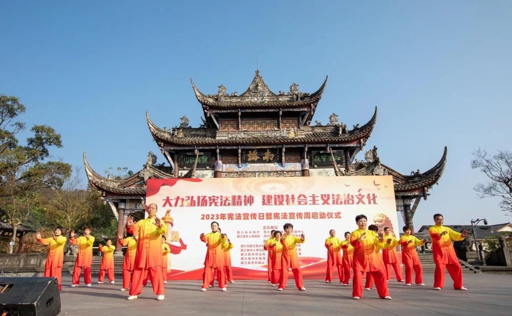 随后,四川省都江堰水利发展中心离退休老同志为现场观众表演了舞蹈《雪山姑娘》《五星红旗》和太极拳。现场进行的宪法知识有奖问答,营造了浓烈的宣传氛围,取得了良好的宣传效果。活动尾声,参与单位工作人员还开展联合巡河等活动。