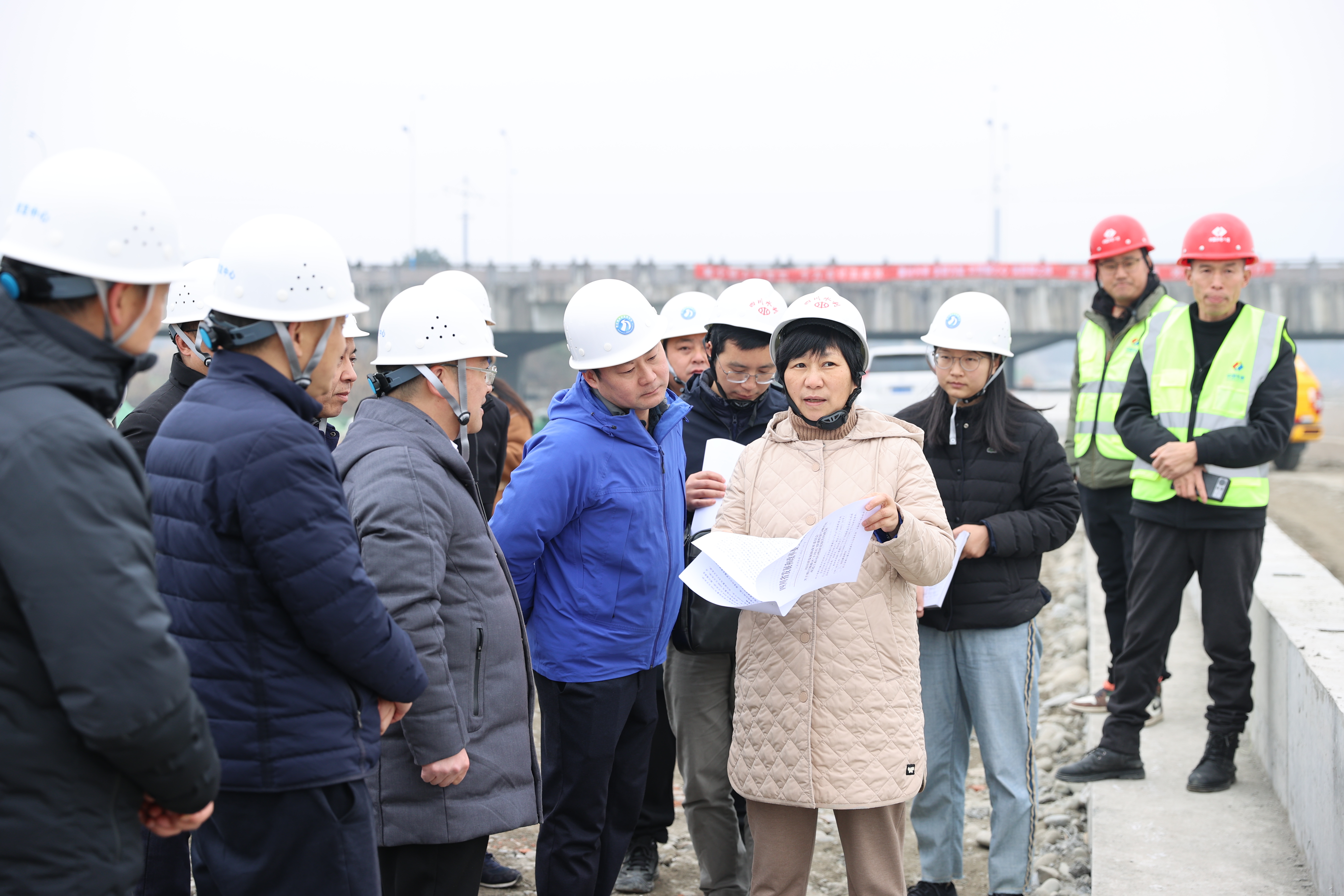 1月29日,水利厅党组成员、副厅长权燕率厅安办赴都江堰水利发展中心督导岁末年初安全生产工作落实情况,实地了解人字堤溢洪道索桥、都江堰渠首排洪护岸工程施工现场安全管理情况,听取了都江堰水利发展中心安全管理情况以及春节期间安全防范工作安排。